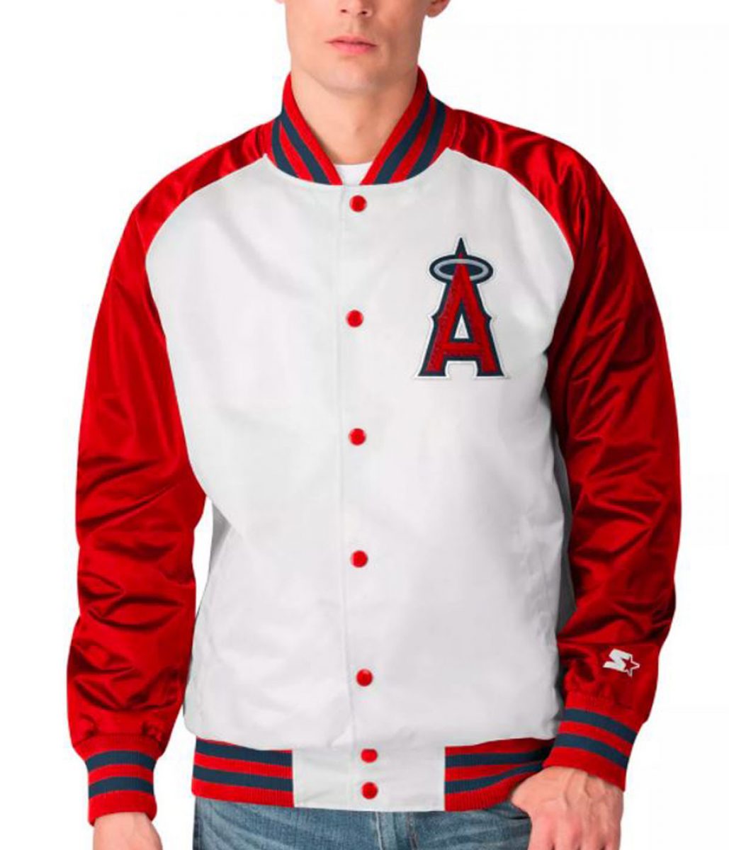 The Los Angeles Angels jacket is made from high-quality satin. The jacket is available in a red and white color combination, which gives it an innovative and bright look. The collar of the jacket is lapel style. It has a full snap buttoned front closure. A soft viscose inner lining of the jacket keeps you calm and relaxed. The sleeves of the Los Angeles Angels White and Red jacket are long ends with rib-knitted cuffs. The jacket has one left interior front pocket for keeping stuff. The fine quality stitching of the Los Angeles Angels jacket makes it durable and desirable to wear. The jacket is an ideal choice for fashion and limelight seekers.