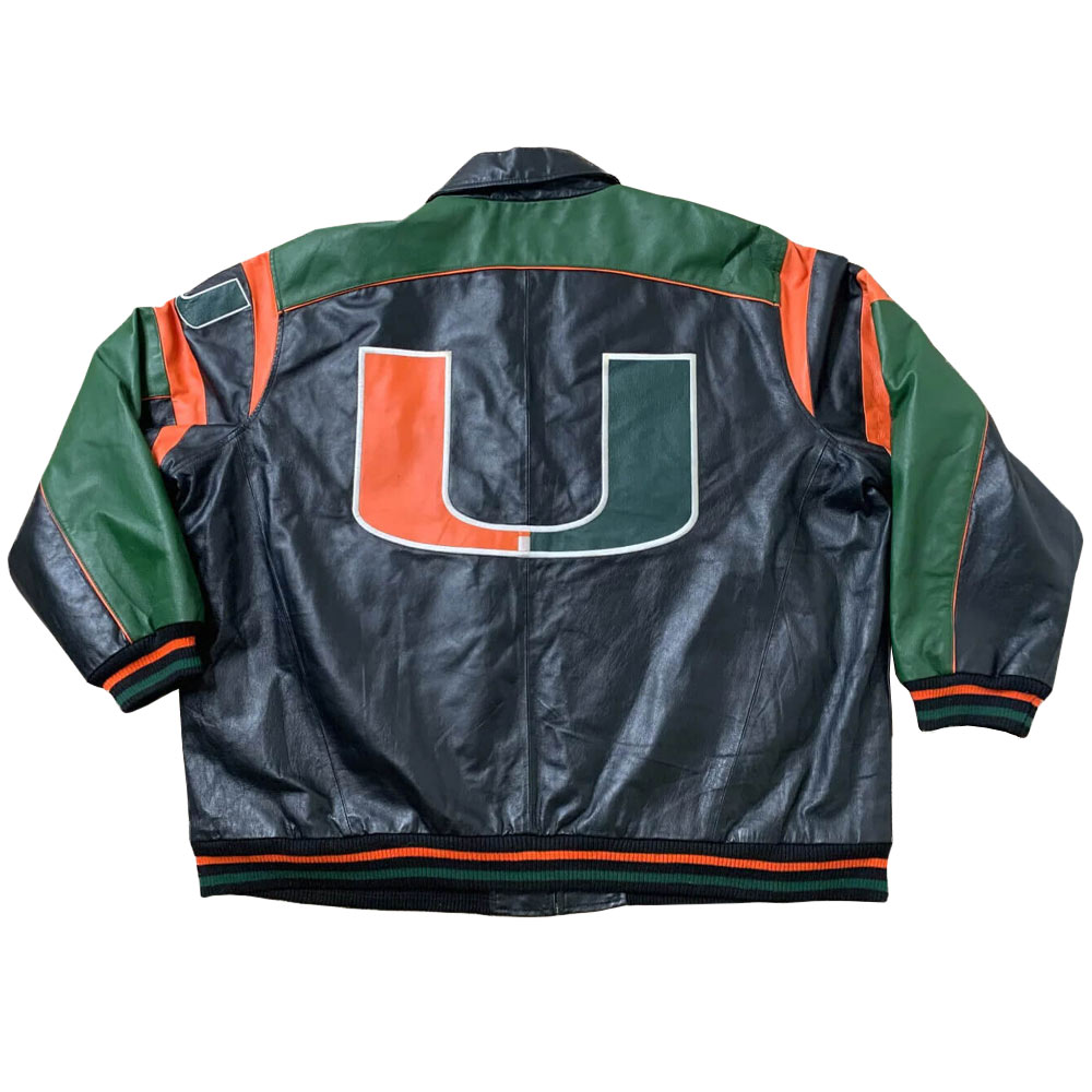 Miami Hurricanes Black/Green Full-Zip Leather Varsity Jacket