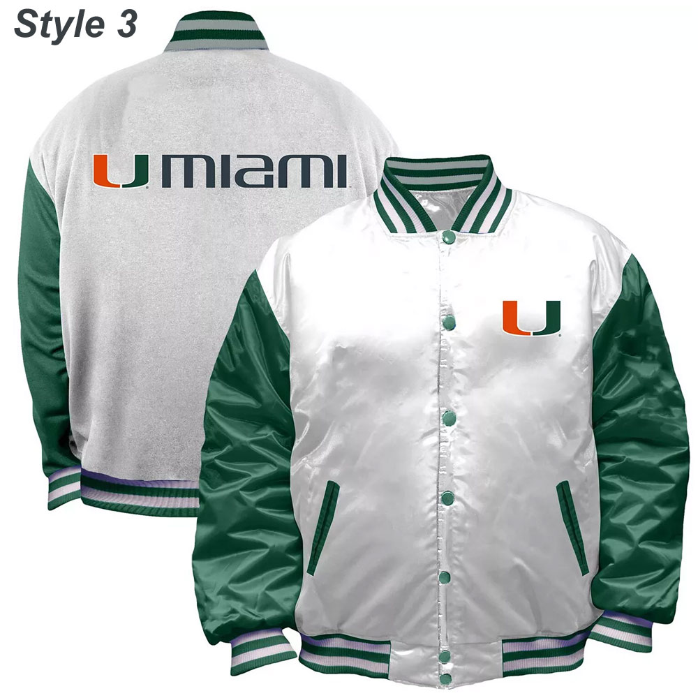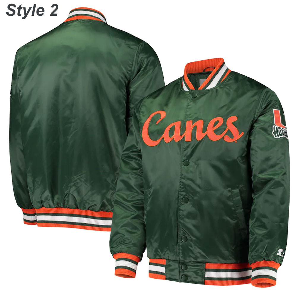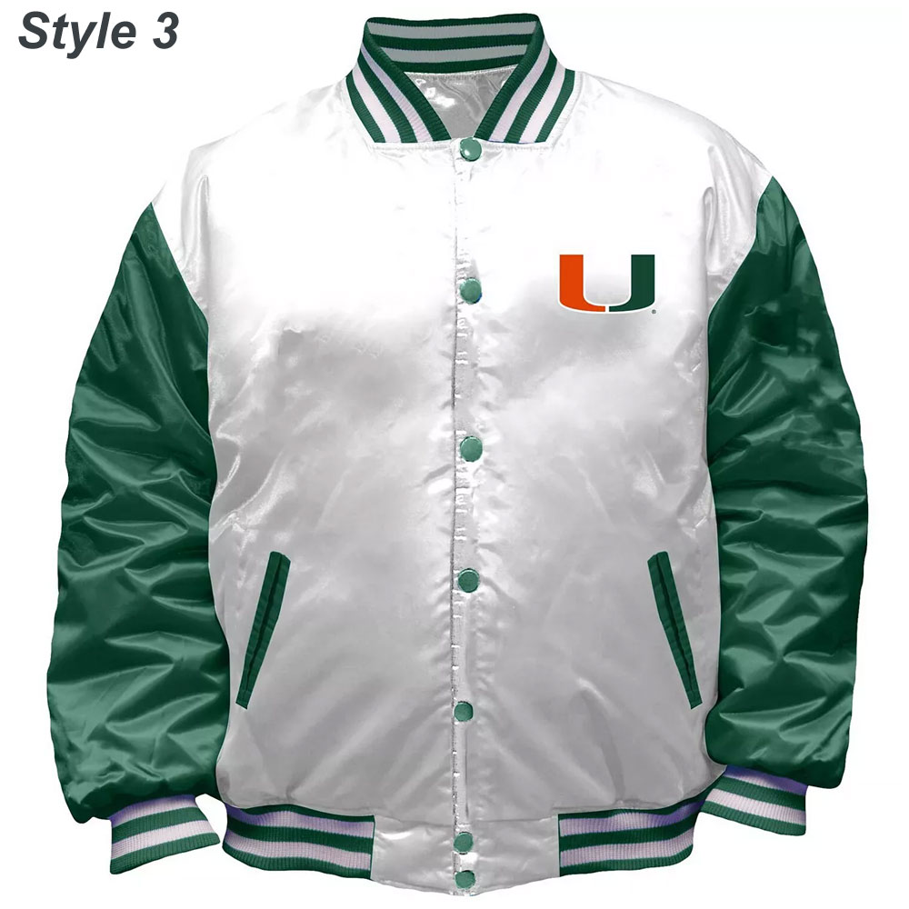 The Miami Hurricanes Green and White jacket is made up of high-quality satin. The jacket is available in a majestic green and white color combination, which gives it an innovative and enchanted look. The jacket has rib knitted collar. The jacket has buttoned front closure. A soft inner viscose lining of the jacket keeps you warm and relaxed. The sleeves of Starter Miami Hurricanes Canes jacket are long with buttoned cuffs. The jacket has two inner and two side pockets. The fine quality stitching Miami Hurricanes Green and White jacket makes it durable and desirable to wear. The jacket is an ideal choice to wear in parties.