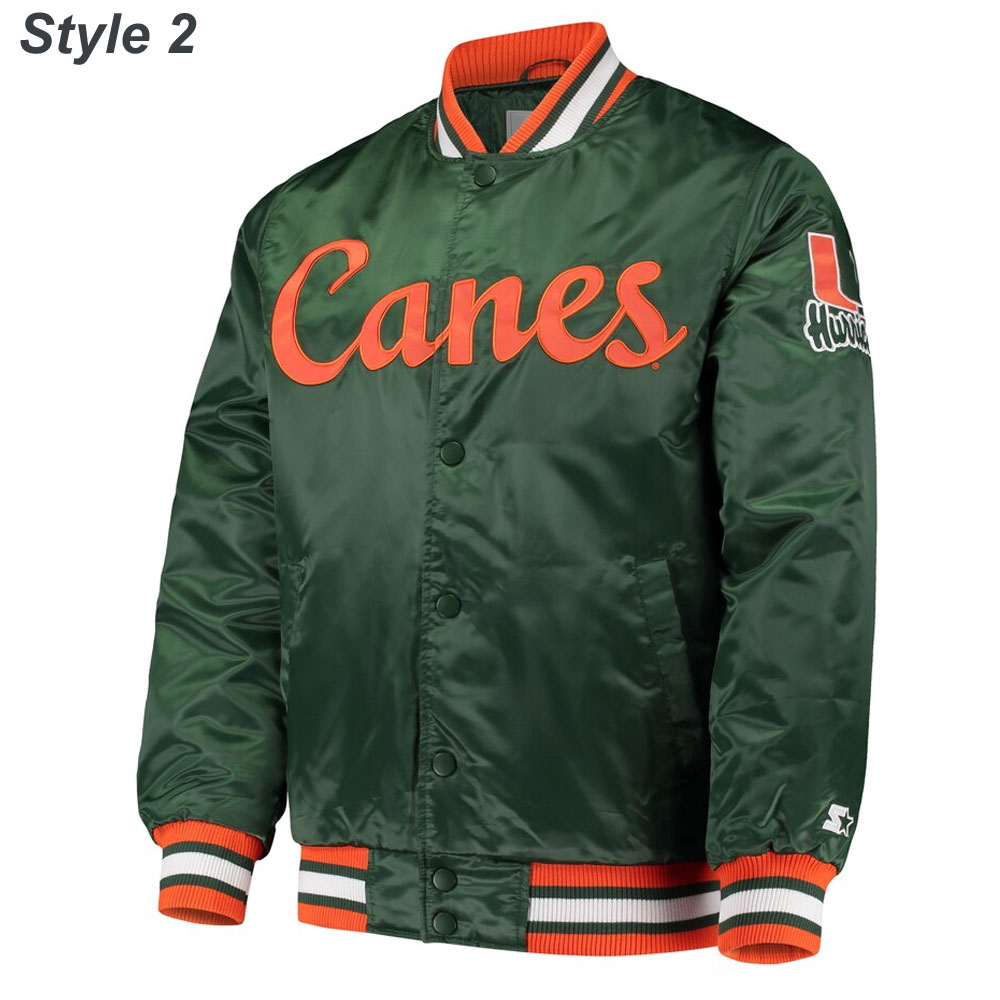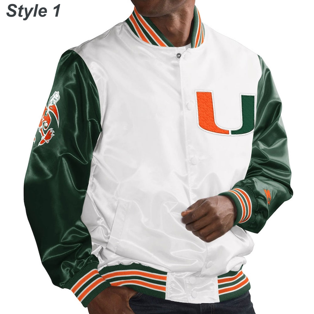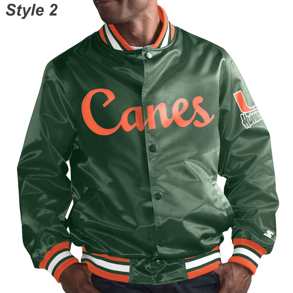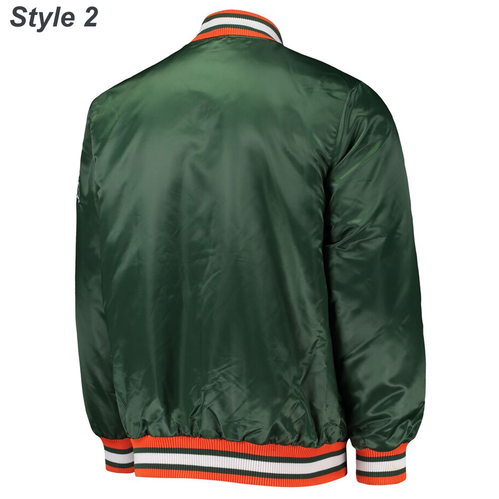 Starter The Rookie Miami Hurricanes Green and White Varsity Satin Jacket