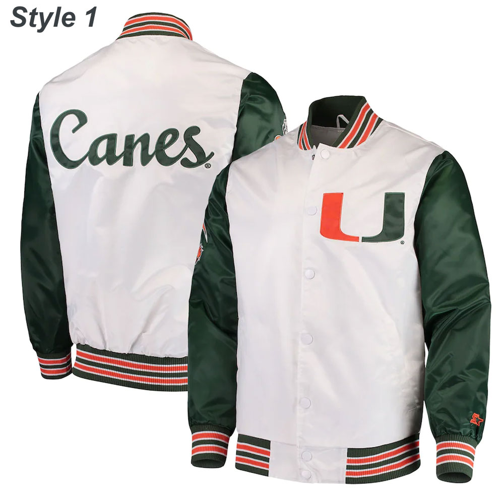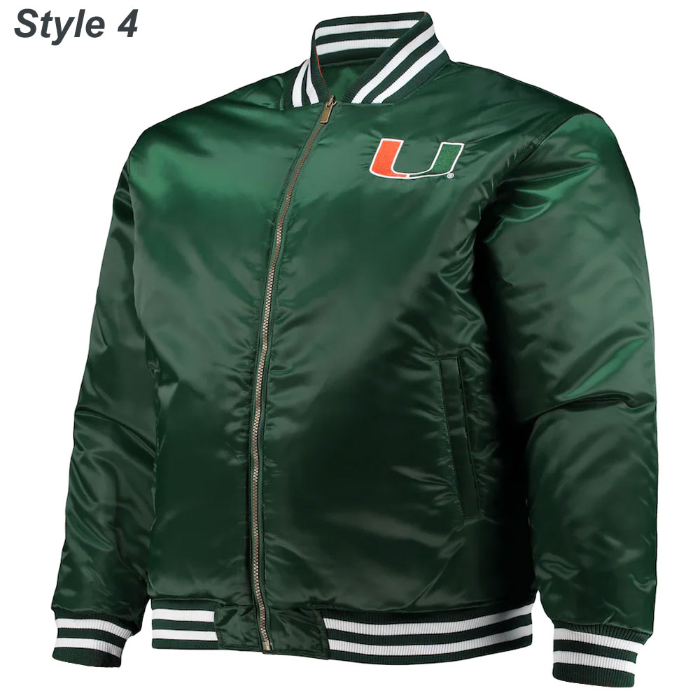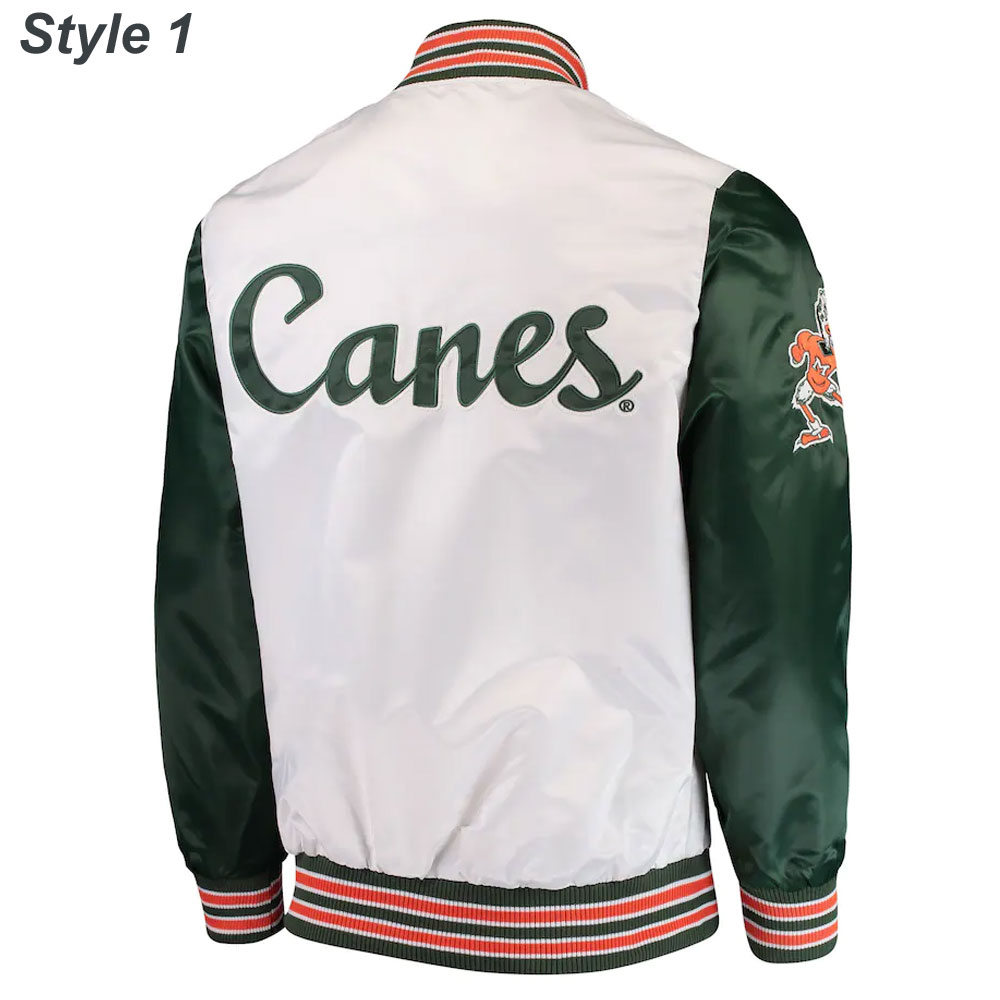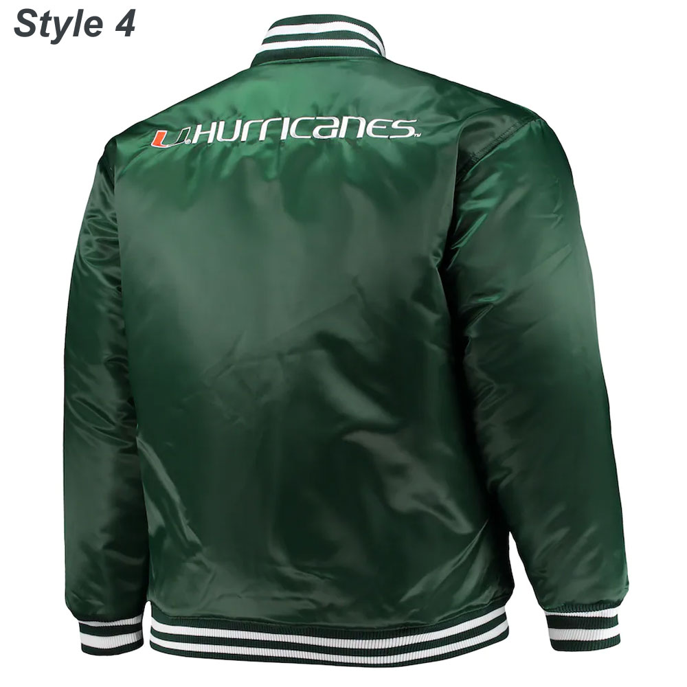 Starter The Rookie Miami Hurricanes Green and White Varsity Satin Jacket