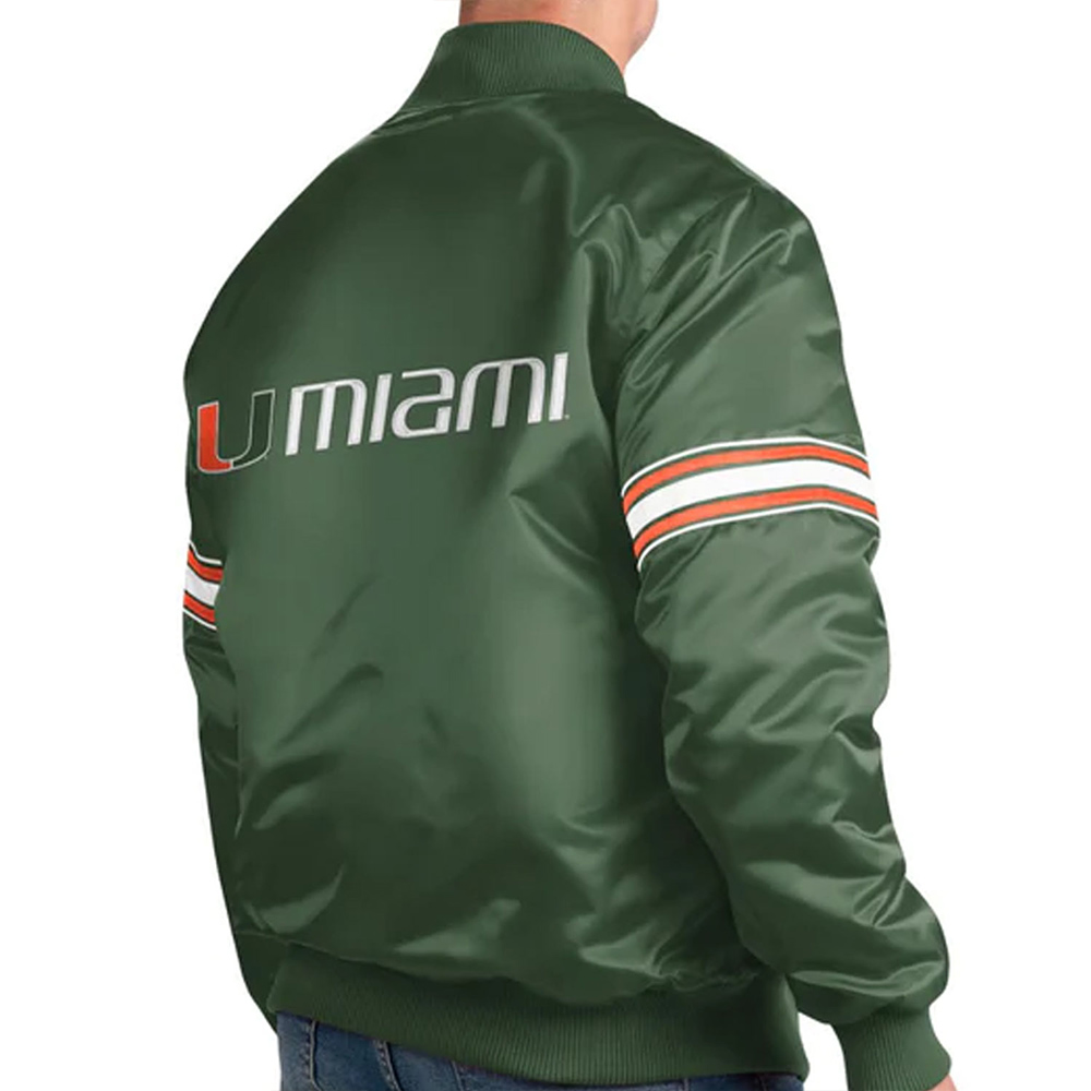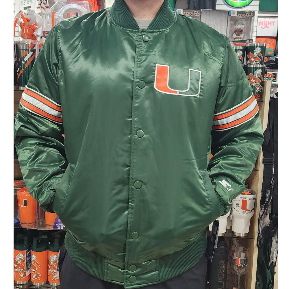 Starter Green Slider Miami Hurricanes Satin Full-Snap Jacket