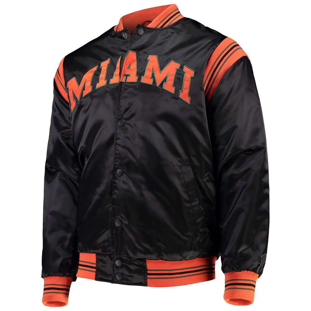Black Miami Hurricanes The Enforcer Full-Button Satin Jacket
