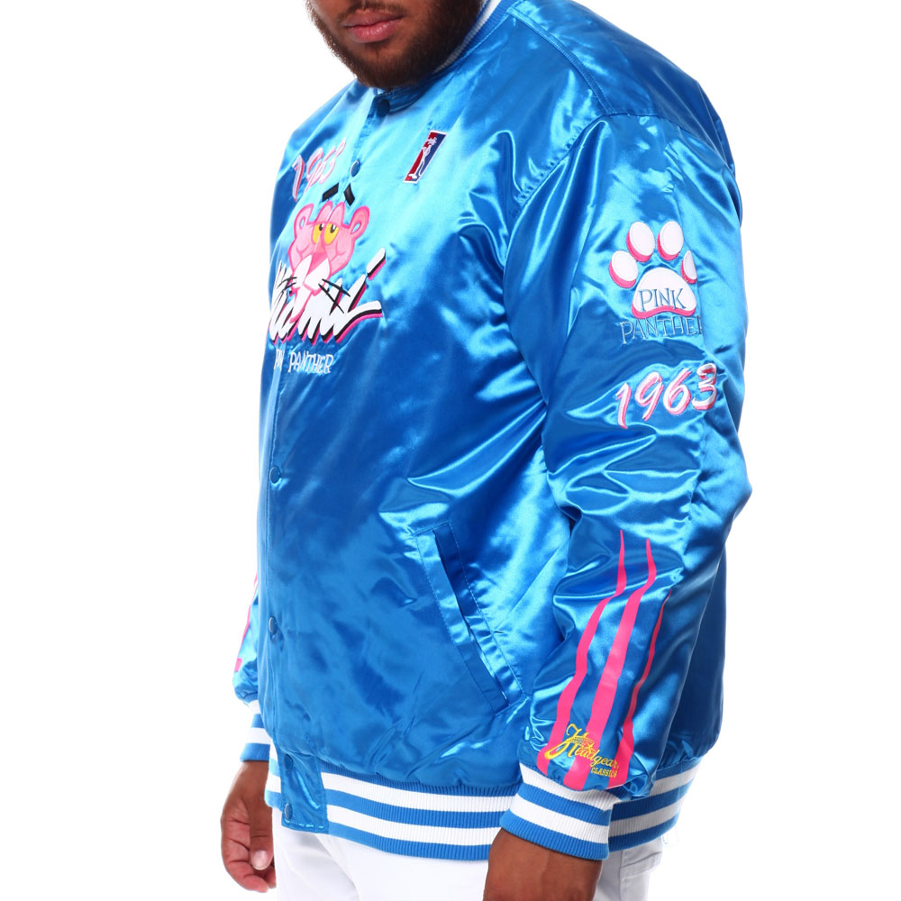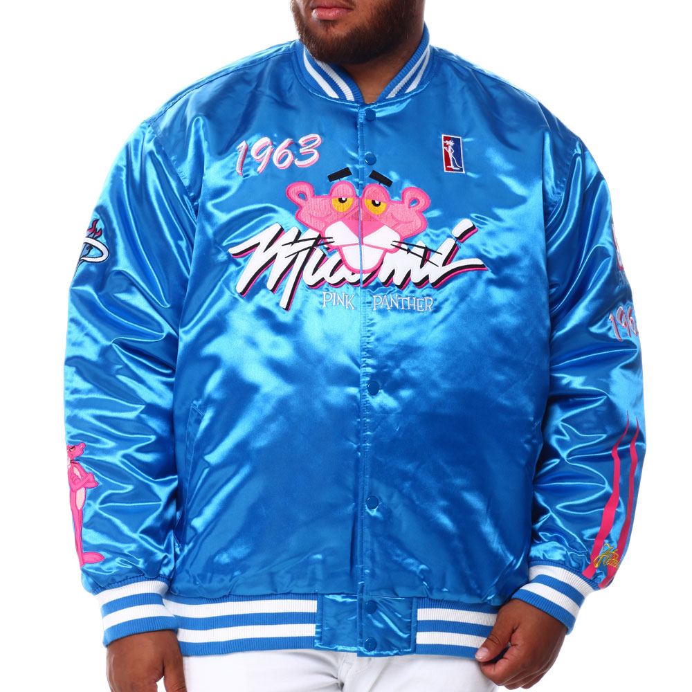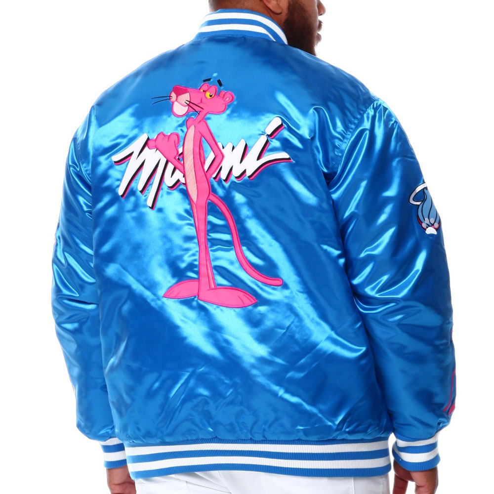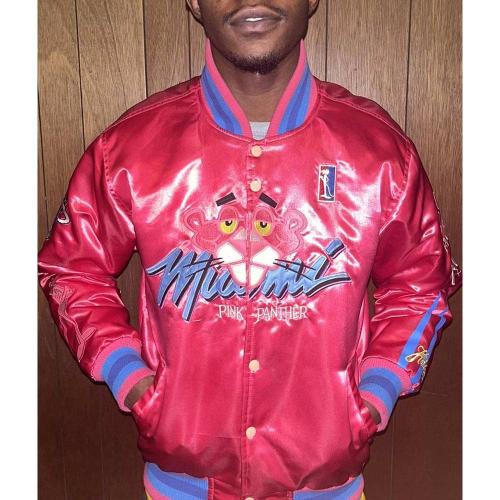 What sets this jacket apart are the distinctive Miami Pink Panther logos featured on the chest, sleeves, and back. These striking details amplify its bold design, offering a true expression of confidence and urban energy. With fine-quality stitching throughout, the jacket promises durability alongside its flashy aesthetic.