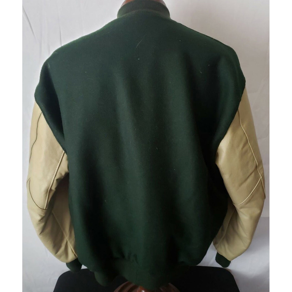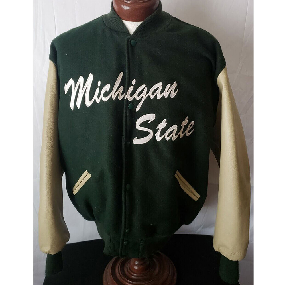 Michigan State Spartans Delong Green and Beige Varsity Wool/Leather Jacket