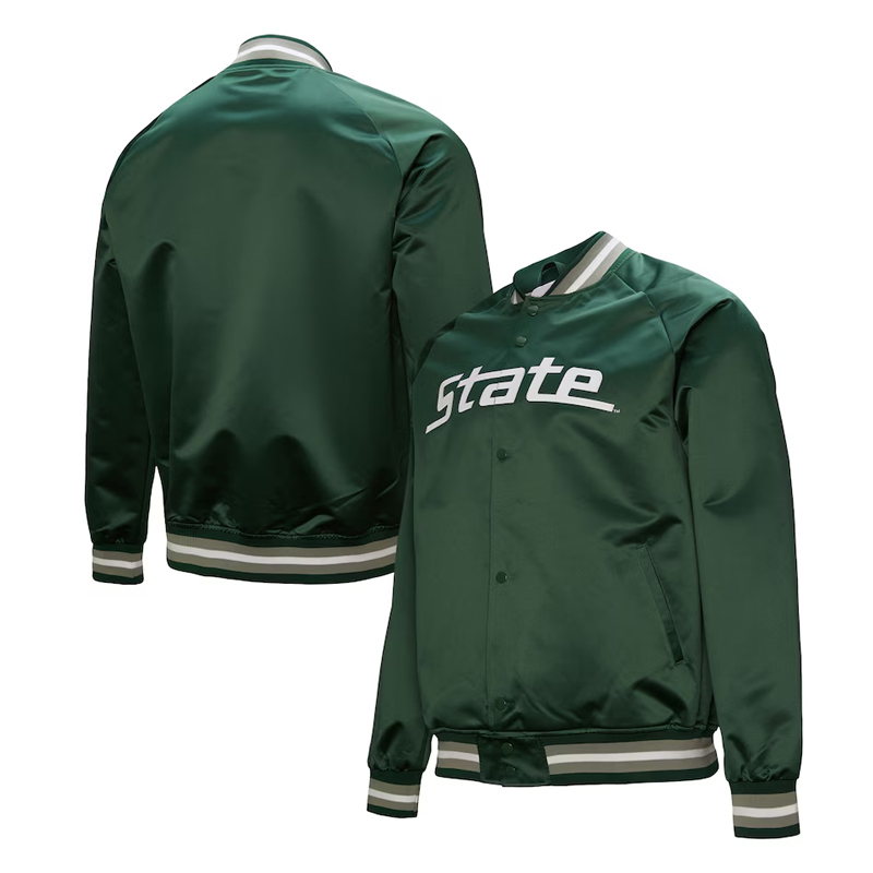 The hemline with ribs adds to the Michigan state Spartans Current Logo Lightweight Green Satin Jacket’s construction, making it fitted in the right places. This is a well constructed jacket with neat sewing and therefore perfect for any fan.