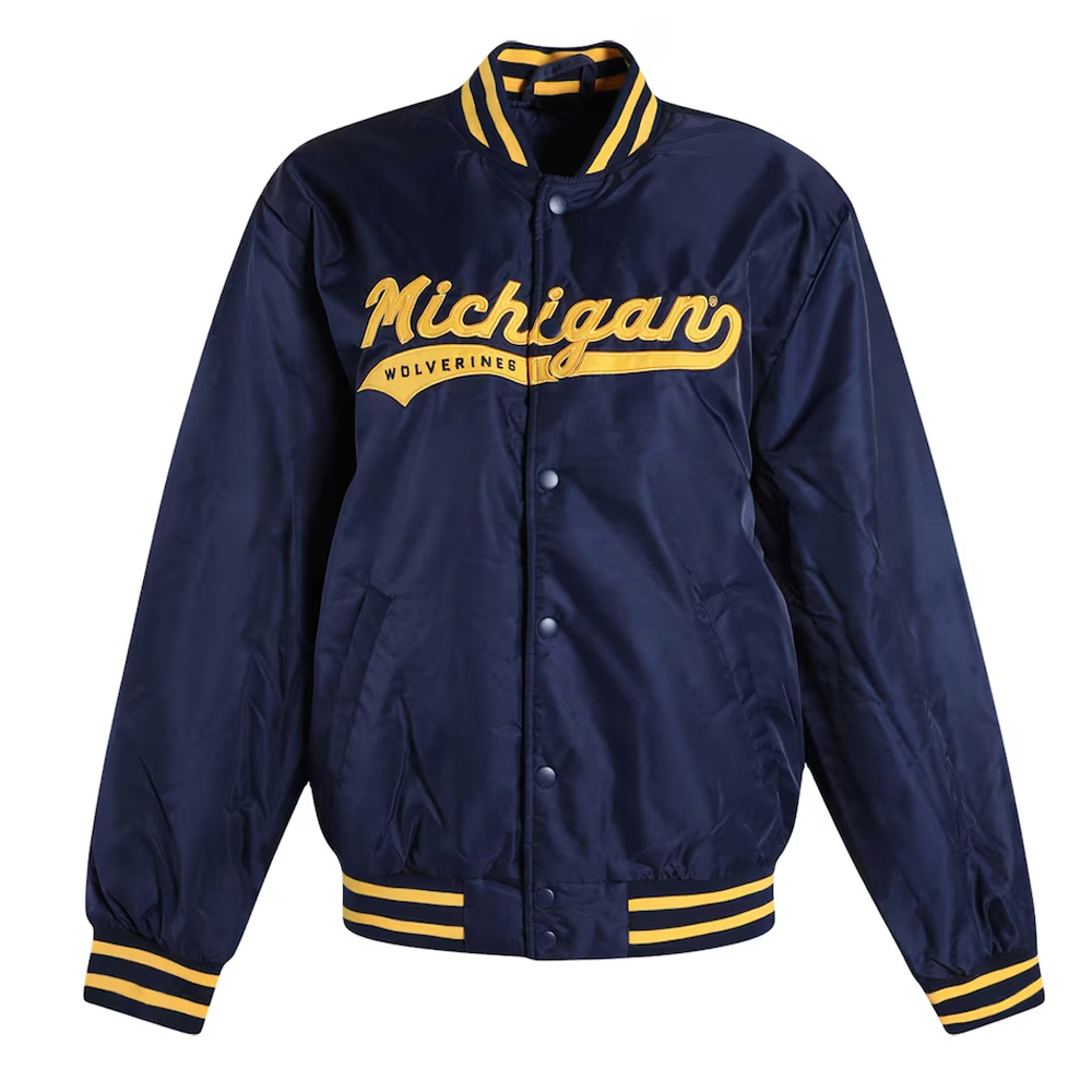 This jacket comes with “Michigan Wolverines” written on the front part, a testimony of the team’s history and spirit. It has been sown to a high standard to provide for a long-lasting clothing piece that has been finished off to a high quality.