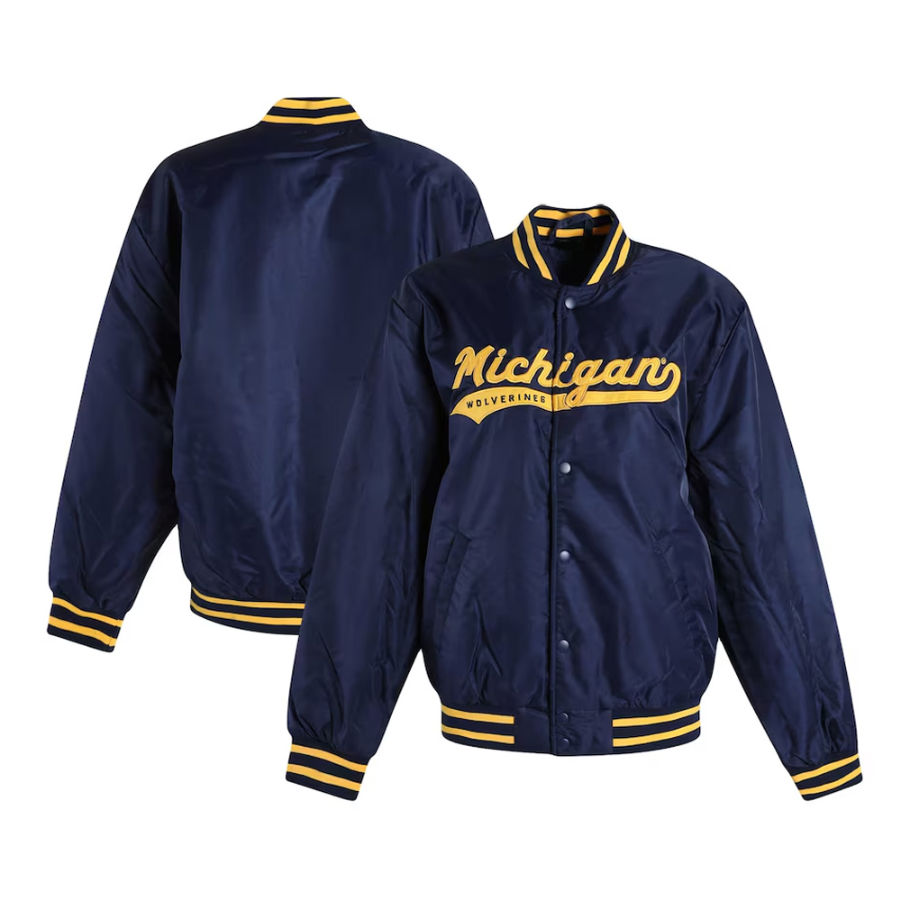 Michigan Wolverines A-Game Navy Full-Snap Varsity Satin Jacket