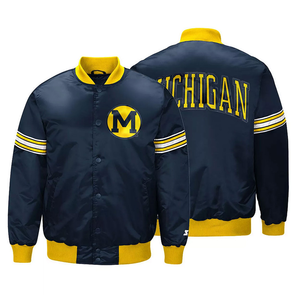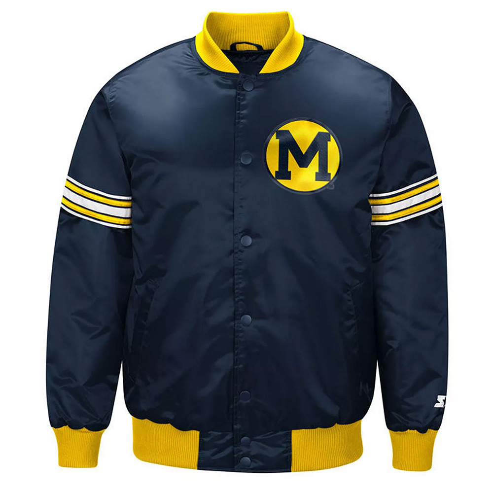 Navy Starter Draft Pick Michigan Wolverines Full-Snap Varsity Satin Jacket