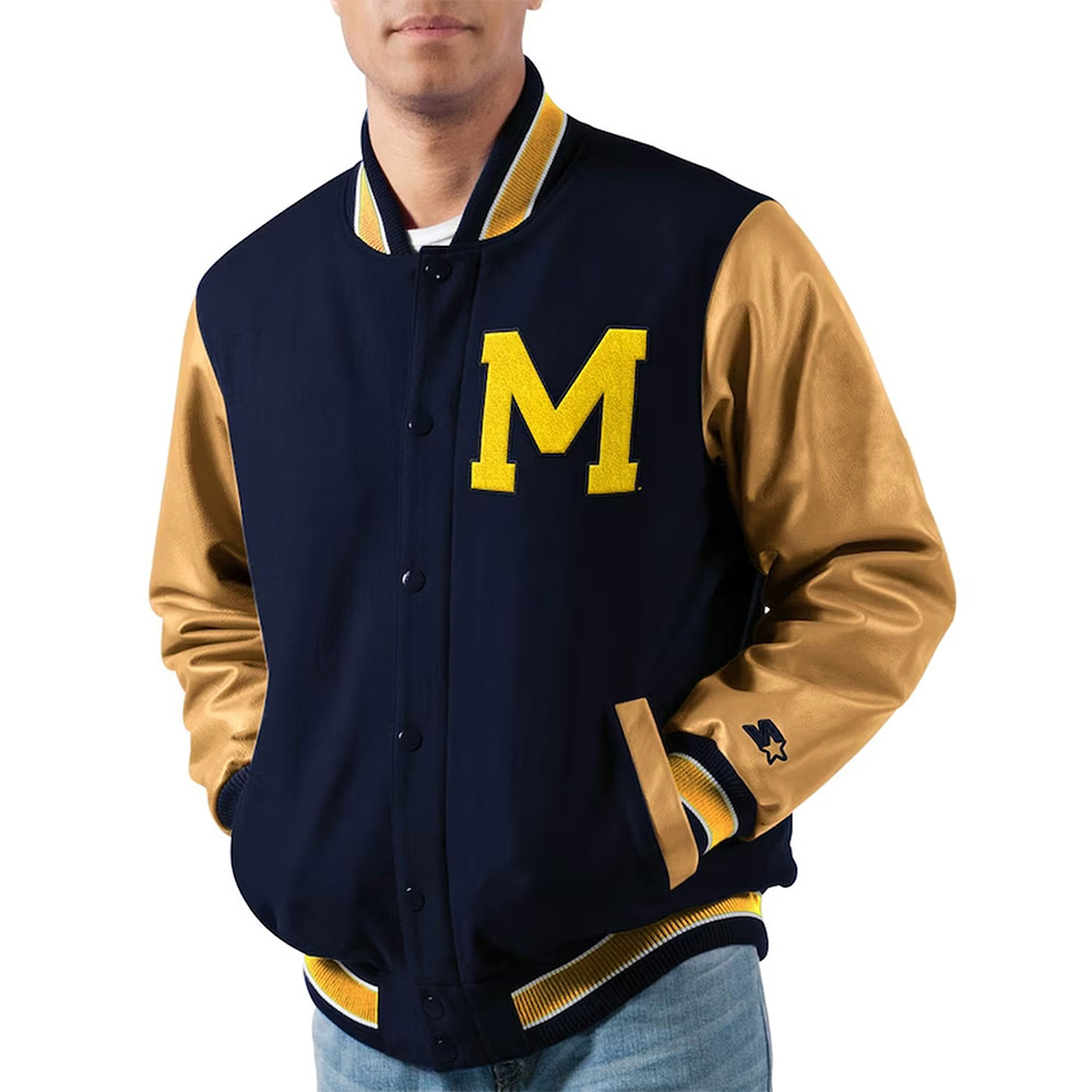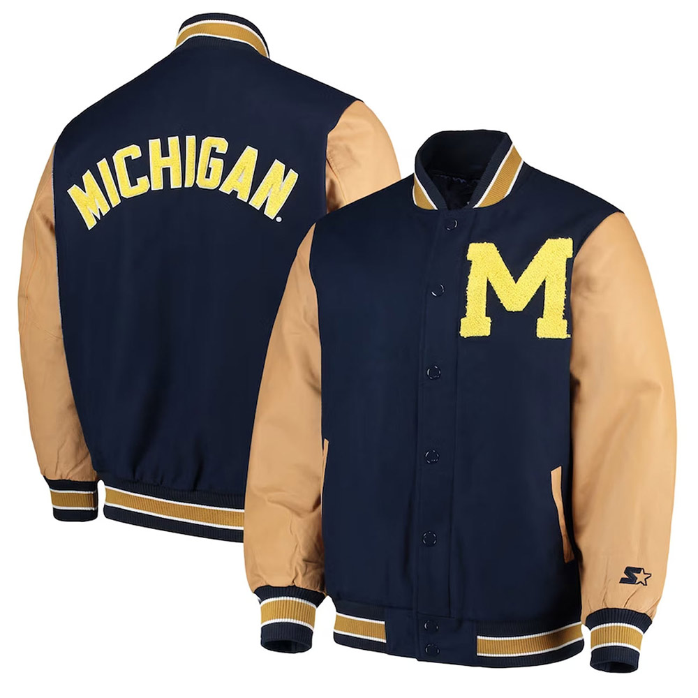 The Michigan Wolverines Jacket is a timeless varsity piece inspired by the Wolverines’ spirit. Designed with premium materials, it blends athletic tradition and modern style.