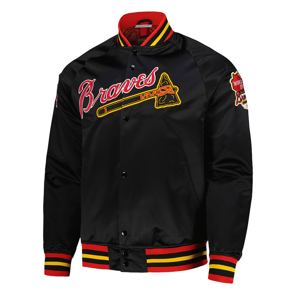 Step up your fan attire with this Milwaukee Braves Black Jacket. This item is a classic as the atmosphere of a baseball match but feels modern, perfect for both men and women to wear. Made out of satin it provides for a luxurious silky feel that is supposed to be rather robust and at the same time it is quite comfortable due to a viscose lining inserted inside. This style has been made to be very slimming and give the much-needed youthful feel and can therefore be said to be universally acceptable among fashion conscious people. A rib-knitted collar, cuffs, and hemline of the Milwaukee Braves Black lightweight satin Jacket are the key signs of the work in the style of a traditional varsity jacket.
