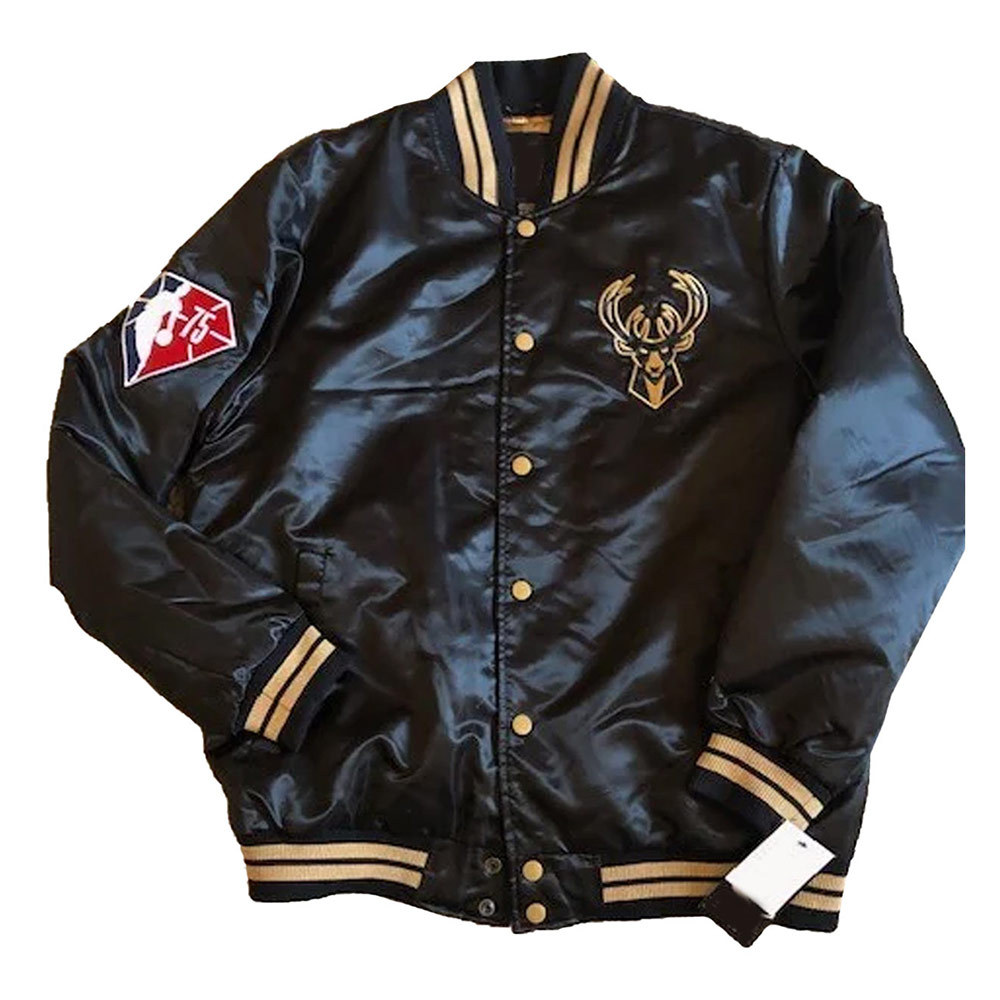 Being a fans, when they wear this Milwaukee Bucks Black Limited Edition Jacket, they will feel quite stylish and officially feel like supporting the team. It is made from special satin fabric that defines comfort and luxury. This jacket is unisex thus can be worn by both sexes. The soft inner viscose lining provides warmth and it is suitable for significantly cooler game nights or any casual occasions. Rib-knitting is applied to collar, cuffs, and hemline of this Milwaukee Bucks Limited Edition Black Jacket to make them more comfortable and fitting well. The full-snap buttoned closure gives it a varsity feel and appeals. The long, fitted sleeves are featured with the Milwaukee Bucks emblem – your team pride.