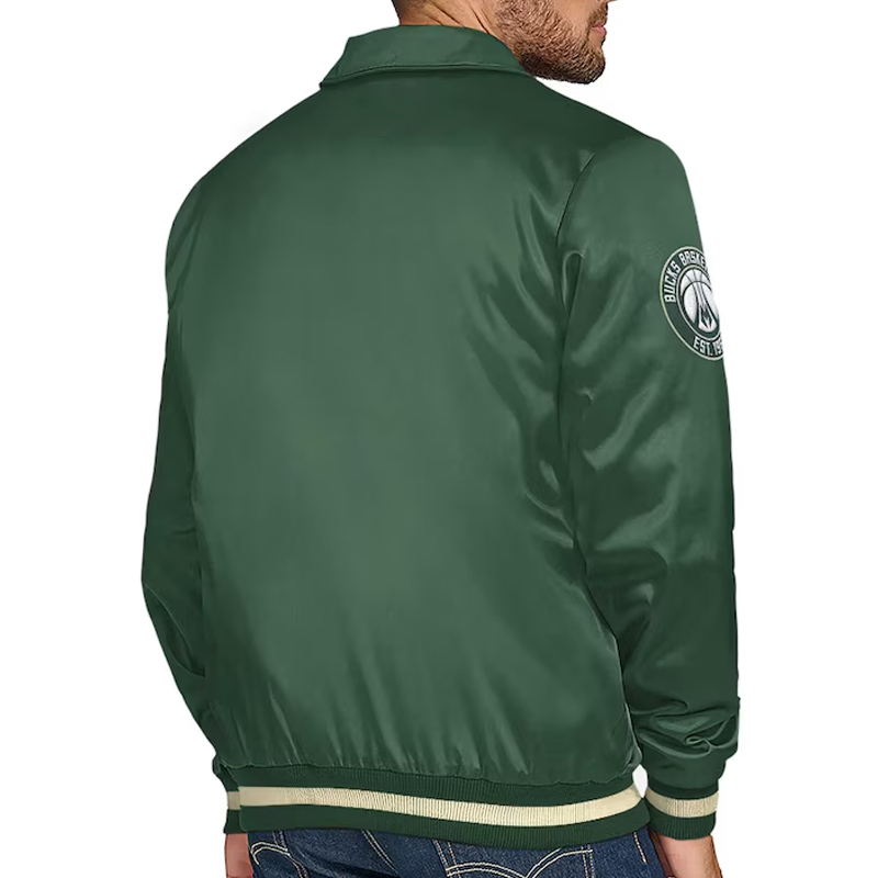 Hunter Green Milwaukee Bucks Stitch Applique Full-Snap Satin Jacket