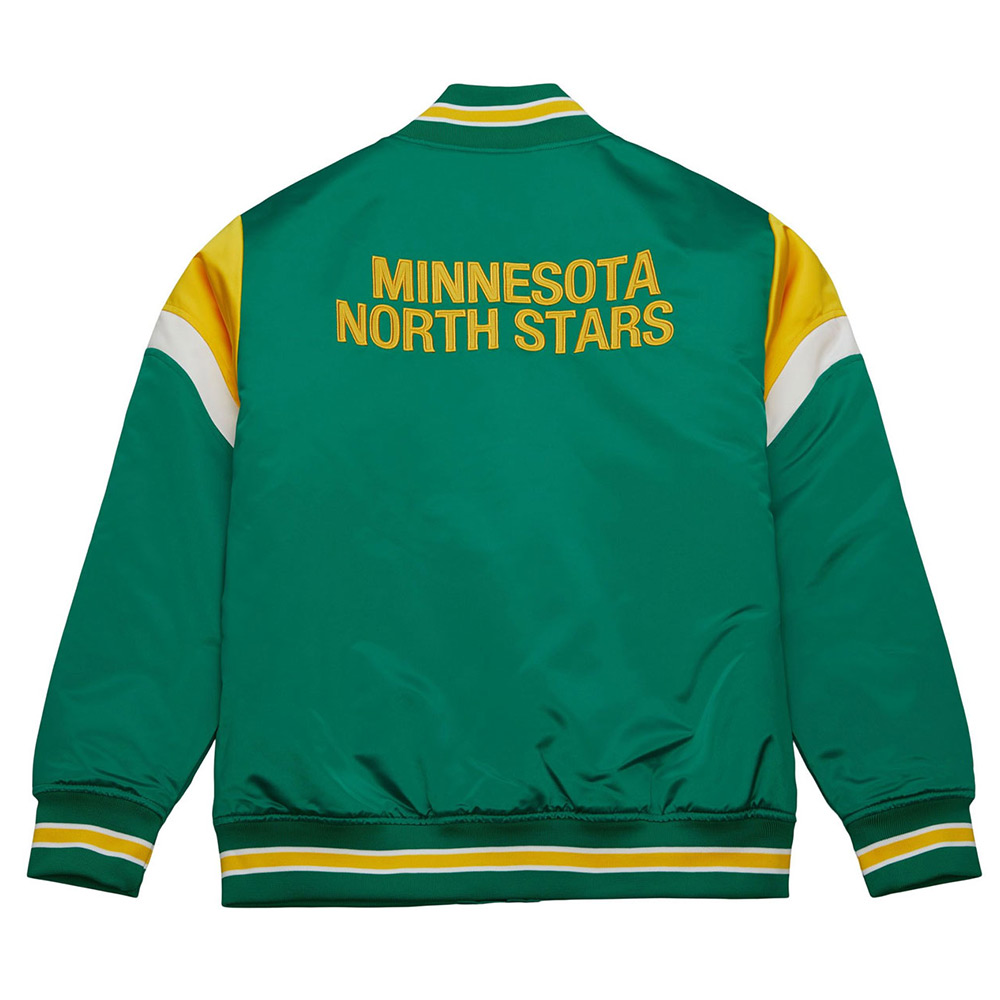 Emblazoned with the iconic Minnesota North Stars team logo on both the front and back, this jacket serves as a proud symbol of your unwavering support for the franchise. Fine stitching throughout ensures durability and longevity, guaranteeing that this jacket will remain a timeless favorite for years to come.