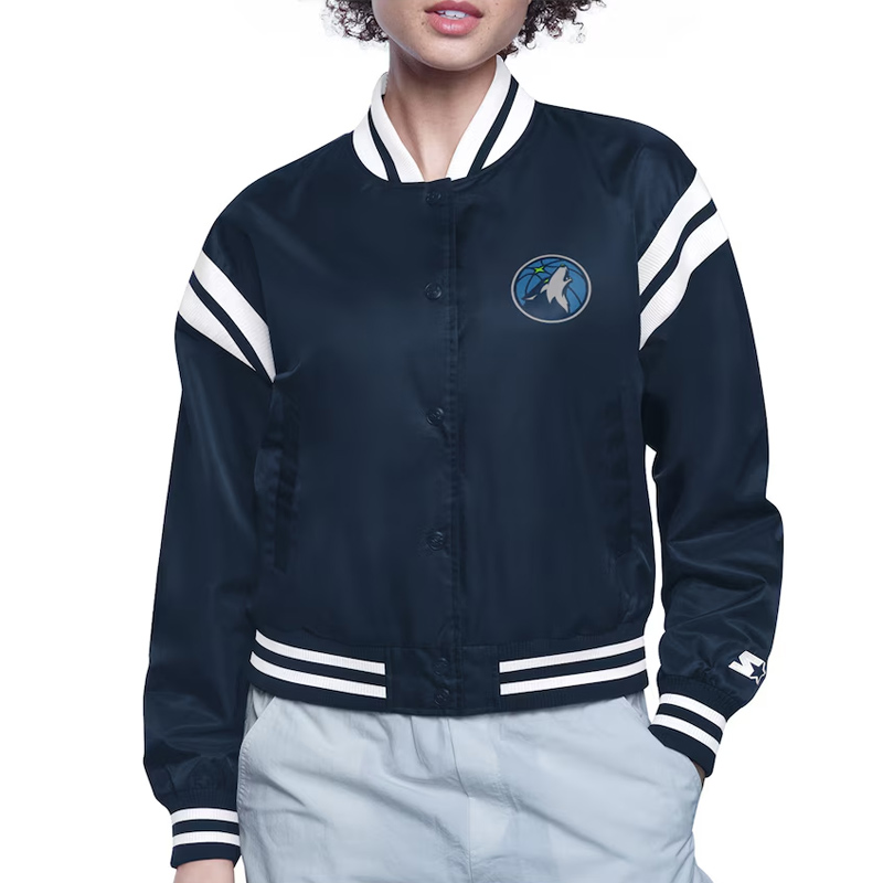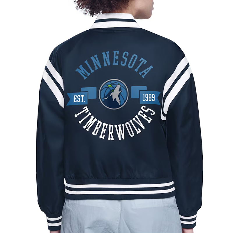 Minnesota Timberwolves Printed Logo Full-Snap Varsity Satin Jacket