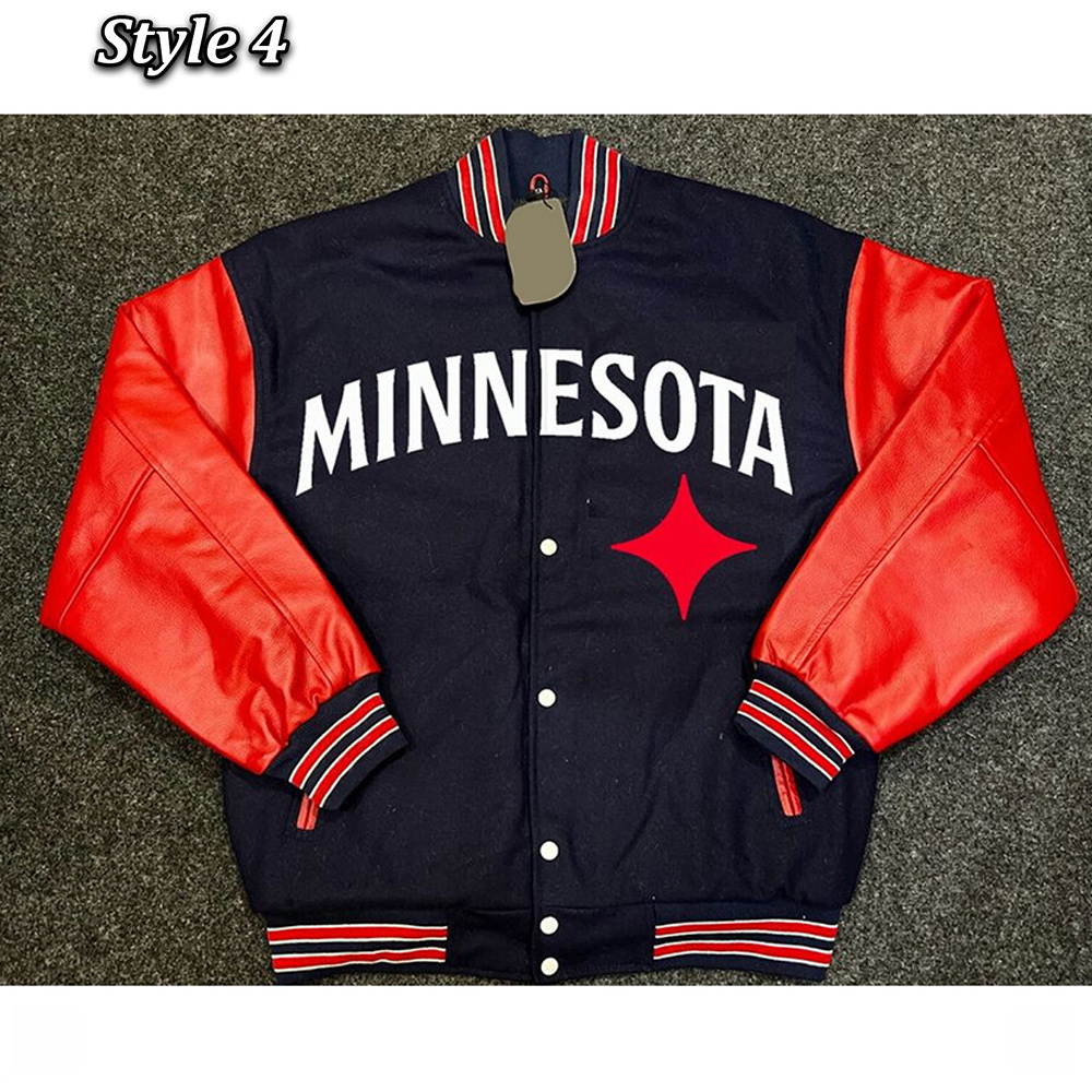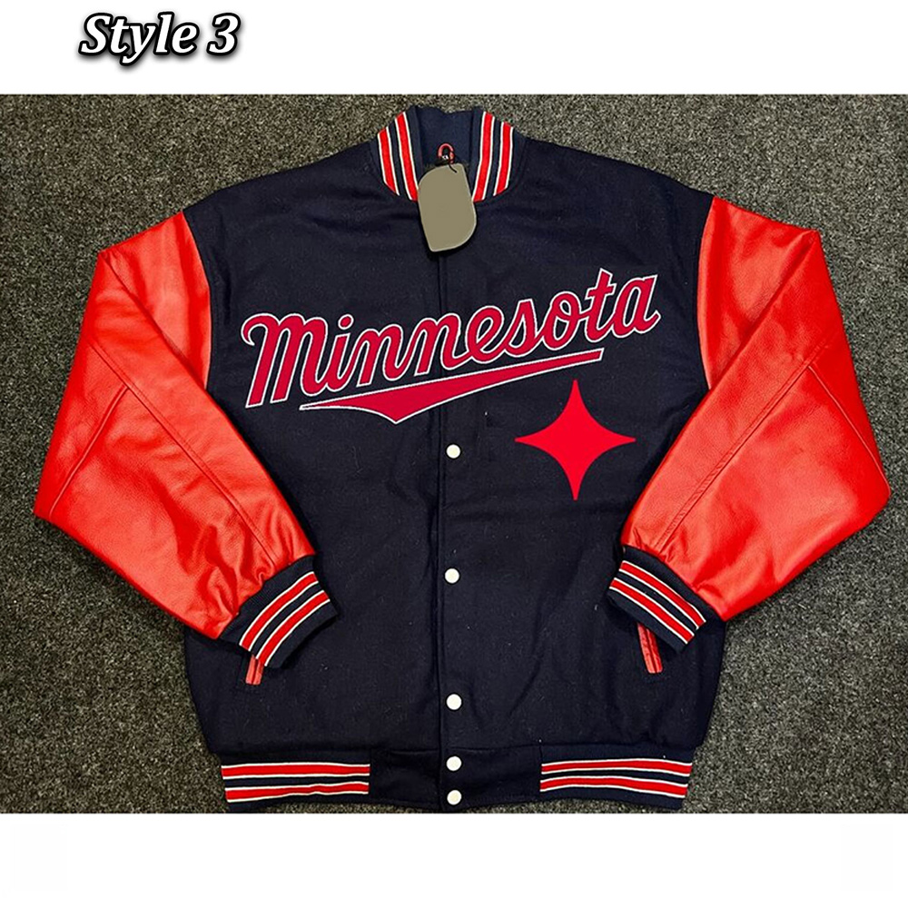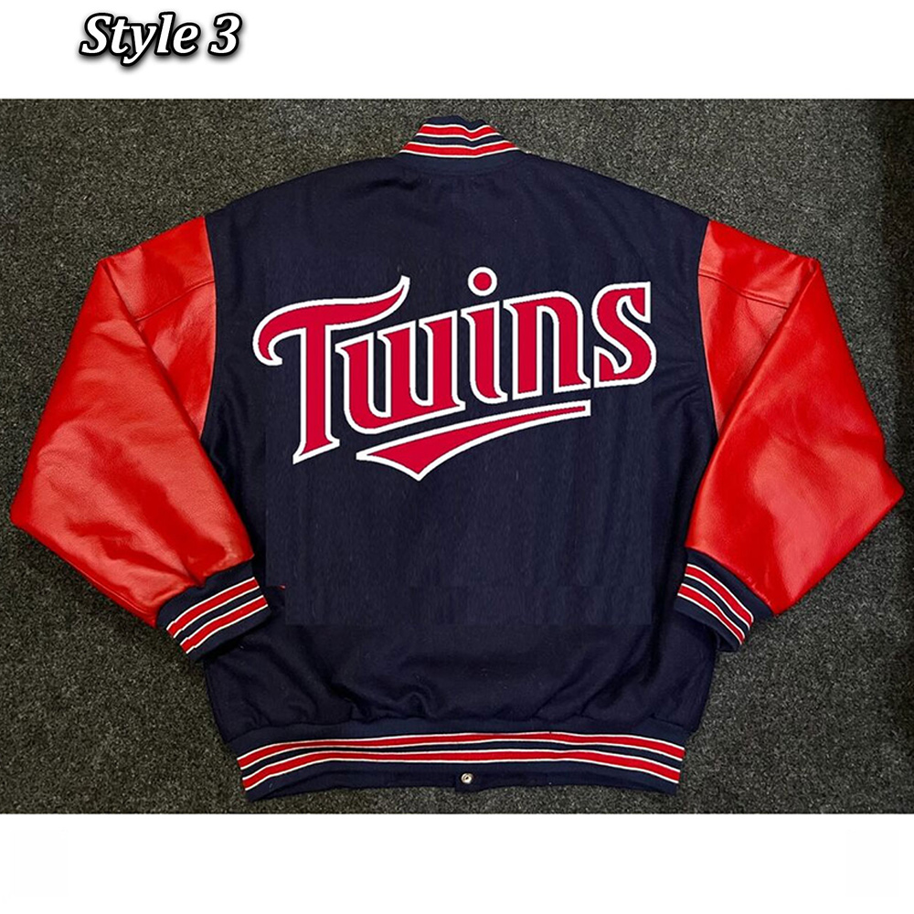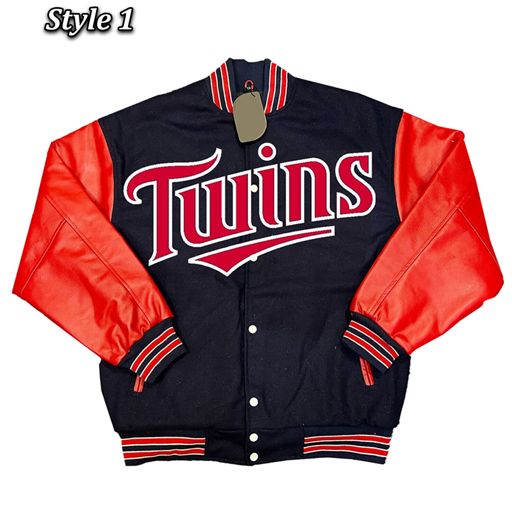 This jacket also comes with two side waist pockets and one pocket inside, enough storage within this garment. On the front and on the back it has distinctive team logos of the Minnesota Twins ‘Twins’ are embroidered. Stitching is rather neat all over the area and this feature is complemented by the extraordinary seam. It is the best piece of clothing for every true fan, and every collector would be thrilled to own this Minnesota Twins varsity jacket, which is a symbol of the best traditions of the team.