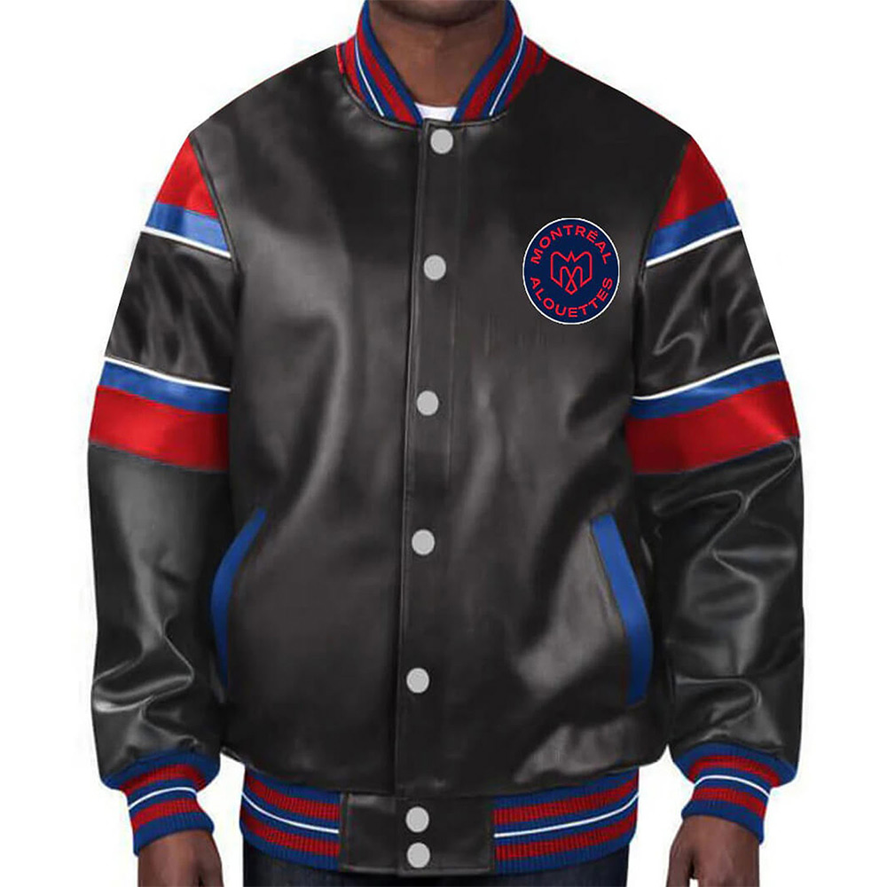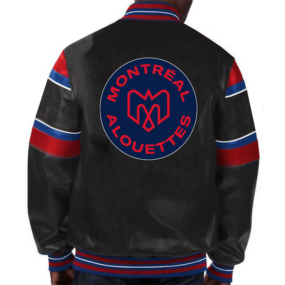 Striped Montreal Alouettes Black Varsity Full-Snap Leather Jacket