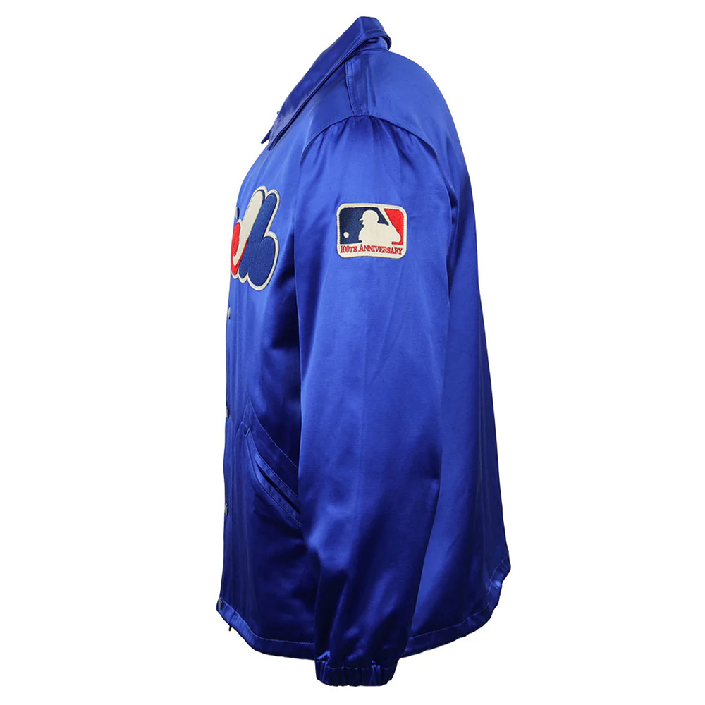 Whether the trip is to a game, a day in the park, or simply adding a baseball historical gem to your collection, the Montreal Expos 1969 Blue Satin Windbreaker is the best option. You’ll embrace the appeal of the Expos with heritage and practicality in this classic jacket and costume piece.