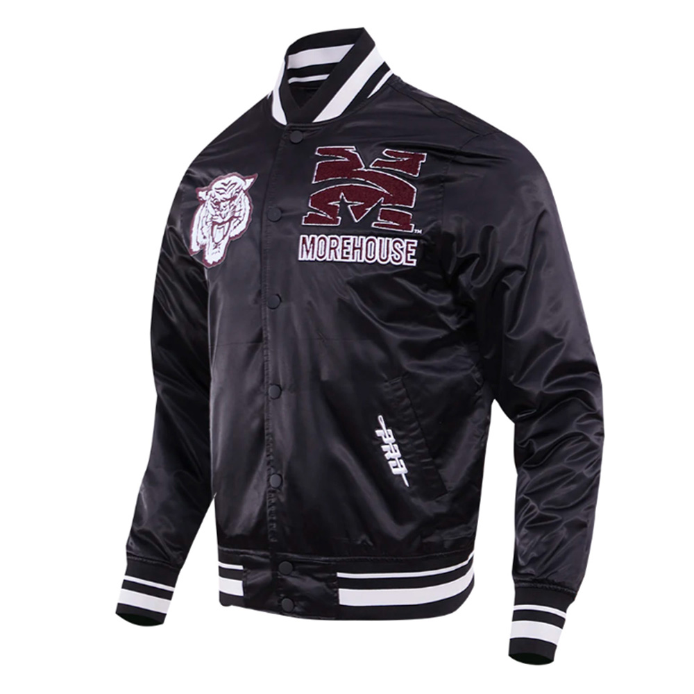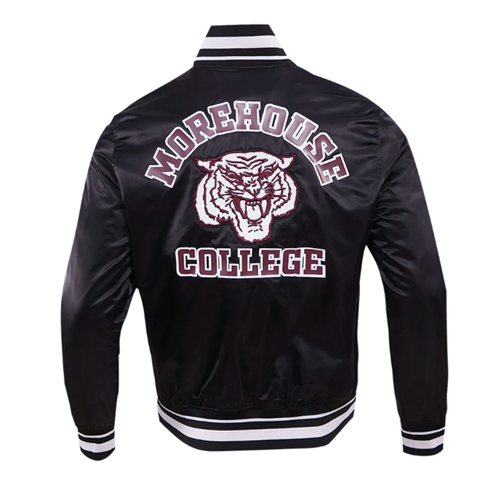 Black Morehouse College Full-Snap Classic Rib Satin Jacket