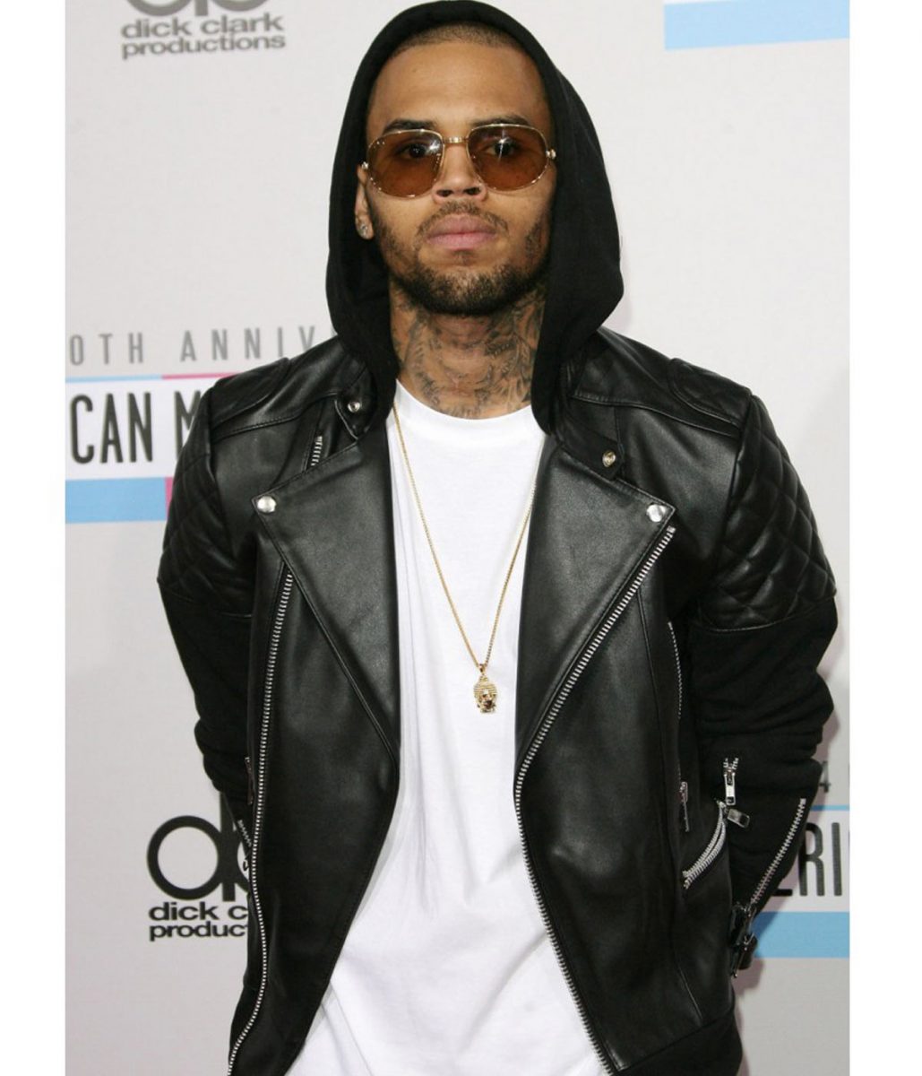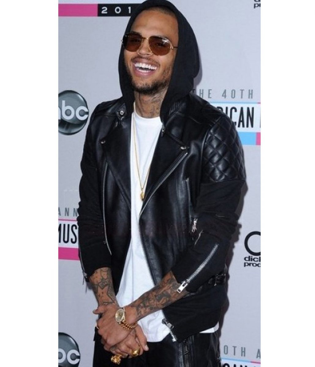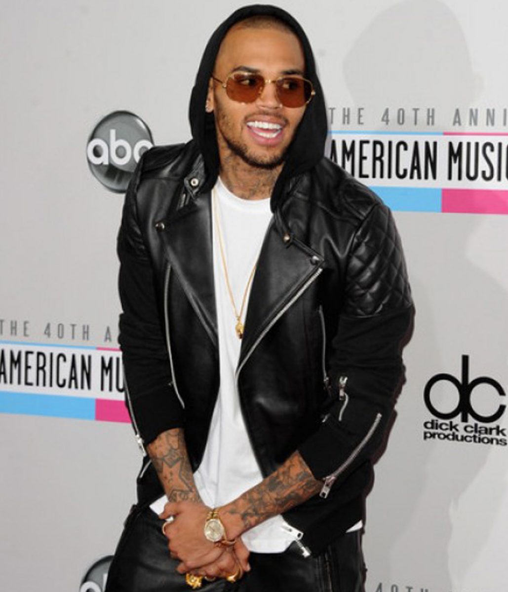 Motorcycle Chris Brown Black Leather Jacket with Hood
