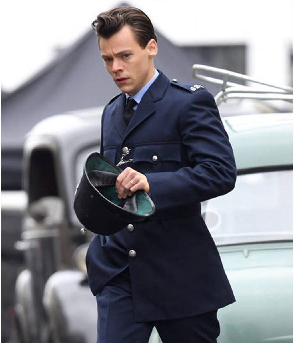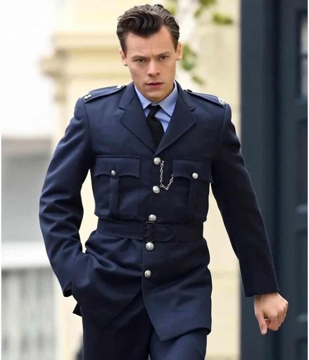 The My Policeman Harry Styles coat is made up of wool. The jacket is available in a glorious blue color, which gives it an innovative and attractive look. The jacket has lapel style collar. The jacket has buttoned front closure. A soft viscose lining of the jacket keeps you warm and relaxed. The sleeves of the Tom Burgess Blue Wool jacket are long with open hem cuffs. The jacket has two inner and two side pockets. The fine quality stitching of My Policeman Harry Styles coat makes it durable and desirable to wear. The jacket is an ideal choice to wear in parties.