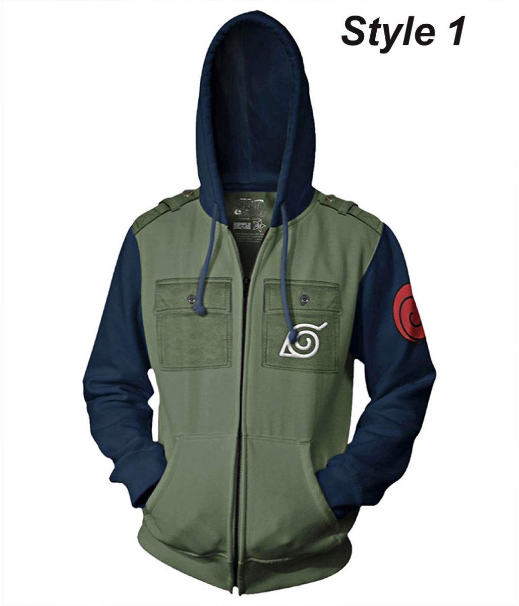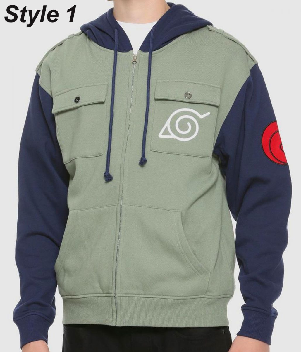 Naruto Shippuden Kakashi Hatake Green and Blue Fleece Hoodie
