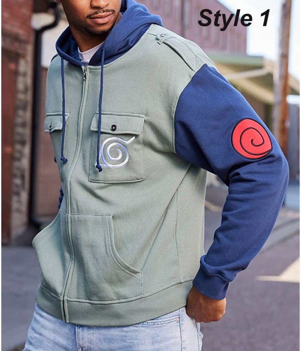 The Naruto Shippuden Kakashi Hatake hoodie is made from high-quality fleece fabric. The hoodie is available in majestic green and blue color combination, giving it an innovative and enchanted look. The collar of has hooded collar. It has a branded YKK zipper front closure. The jacket has soft viscose inner lining of the hoodie keeps you calm and relaxed. The sleeves of Kakashi Hatake Naruto Shippuden hoodie are long with rib knitted cuffs. The hoodie has two inner and two outer pockets. The fine quality stitching of the Naruto Shippuden Kakashi Hatake hoodie makes it durable and desirable to wear.