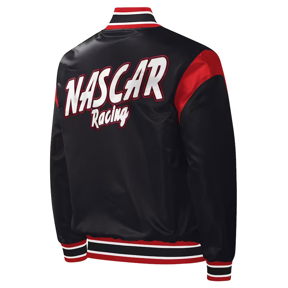 Starter Black NASCAR Force Play Full-Snap Varsity Satin Jacket