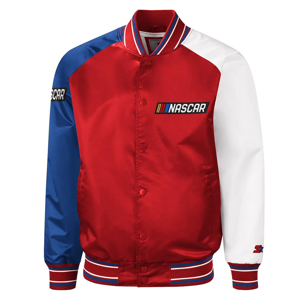 Starter NASCAR The Reliever Full-Snap Red Varsity Satin Jacket