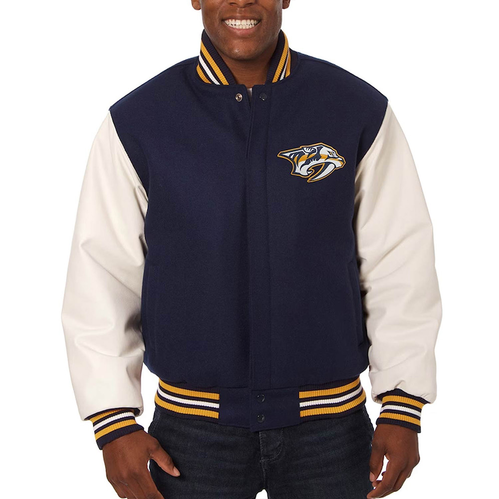 Navy/White Nashville Predators Wool/Leather Varsity Full-Snap Jacket