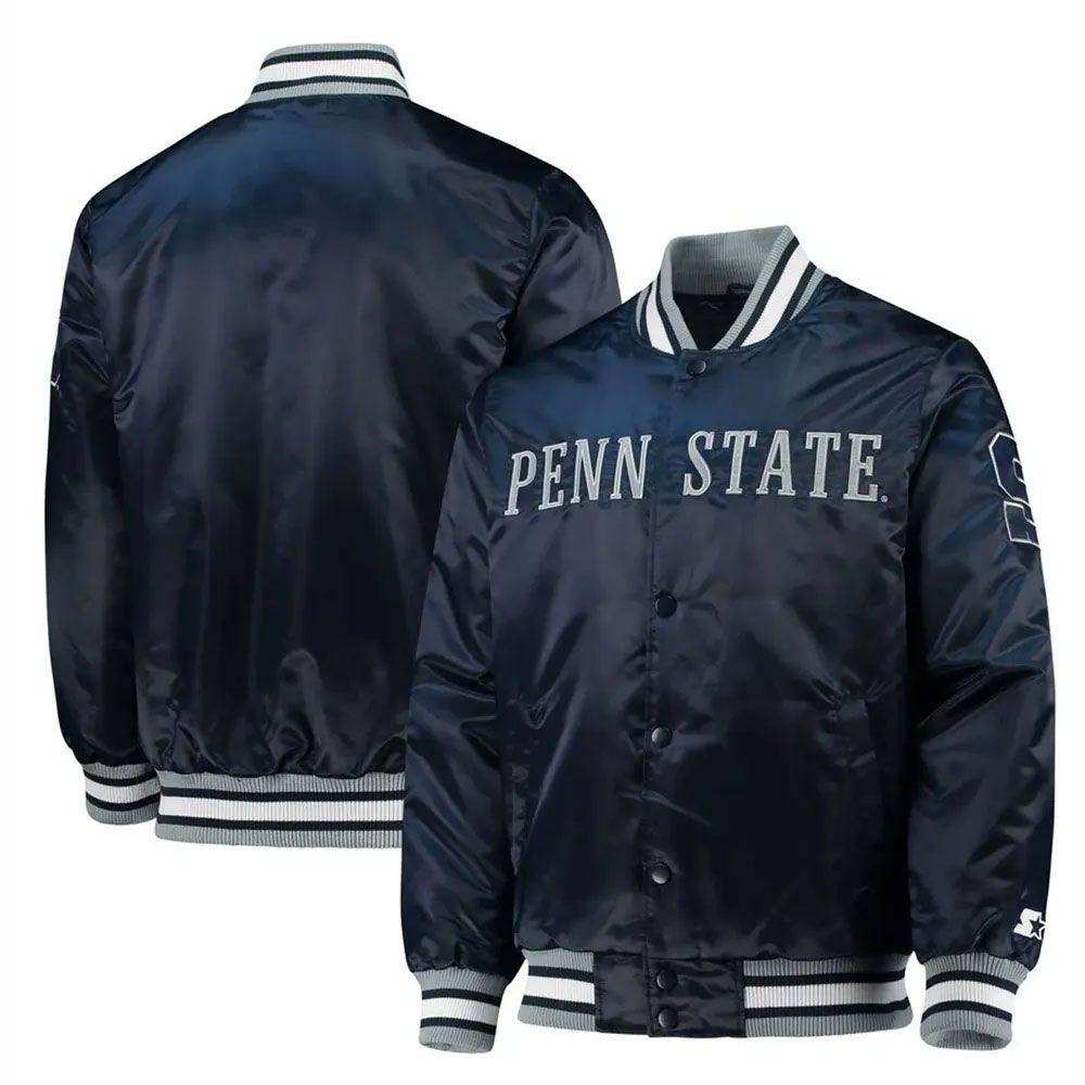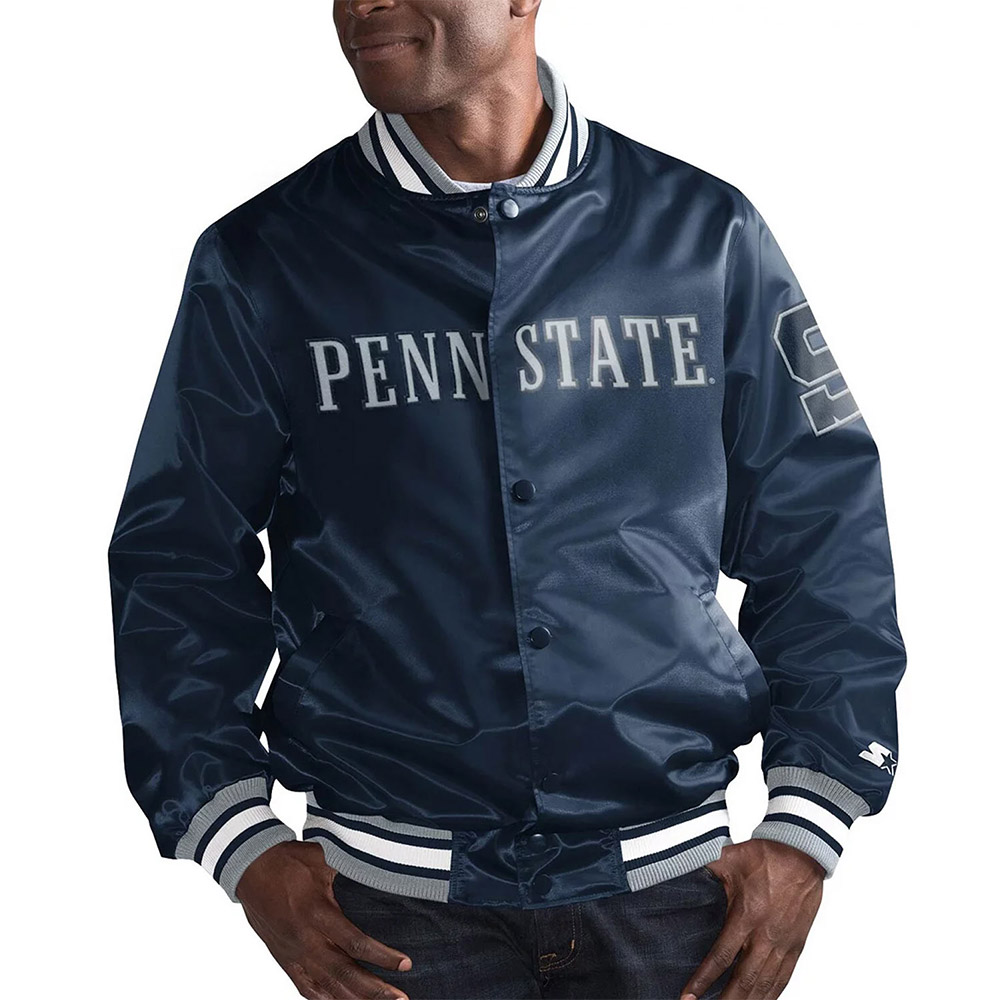 The Penn State Nittany Lions o-Line jacket is made up of high-quality satin. The jacket is available in a glorious navy blue color, which gives it an innovative and attractive look. The jacket has shirt style collar. The jacket has branded YKK zipper front closure. A soft inner viscose lining of the jacket keeps you warm and relaxed. The sleeves of O-Line Penn State Nittany Lions Navy Blue Satin jacket are long with rib knitted cuffs. The jacket has two inner and two side pockets. The fine quality stitching of Penn State Nittany Lions o-Line jacket is comfortable and desirable to wear. The jacket is an ideal choice to wear in parties.