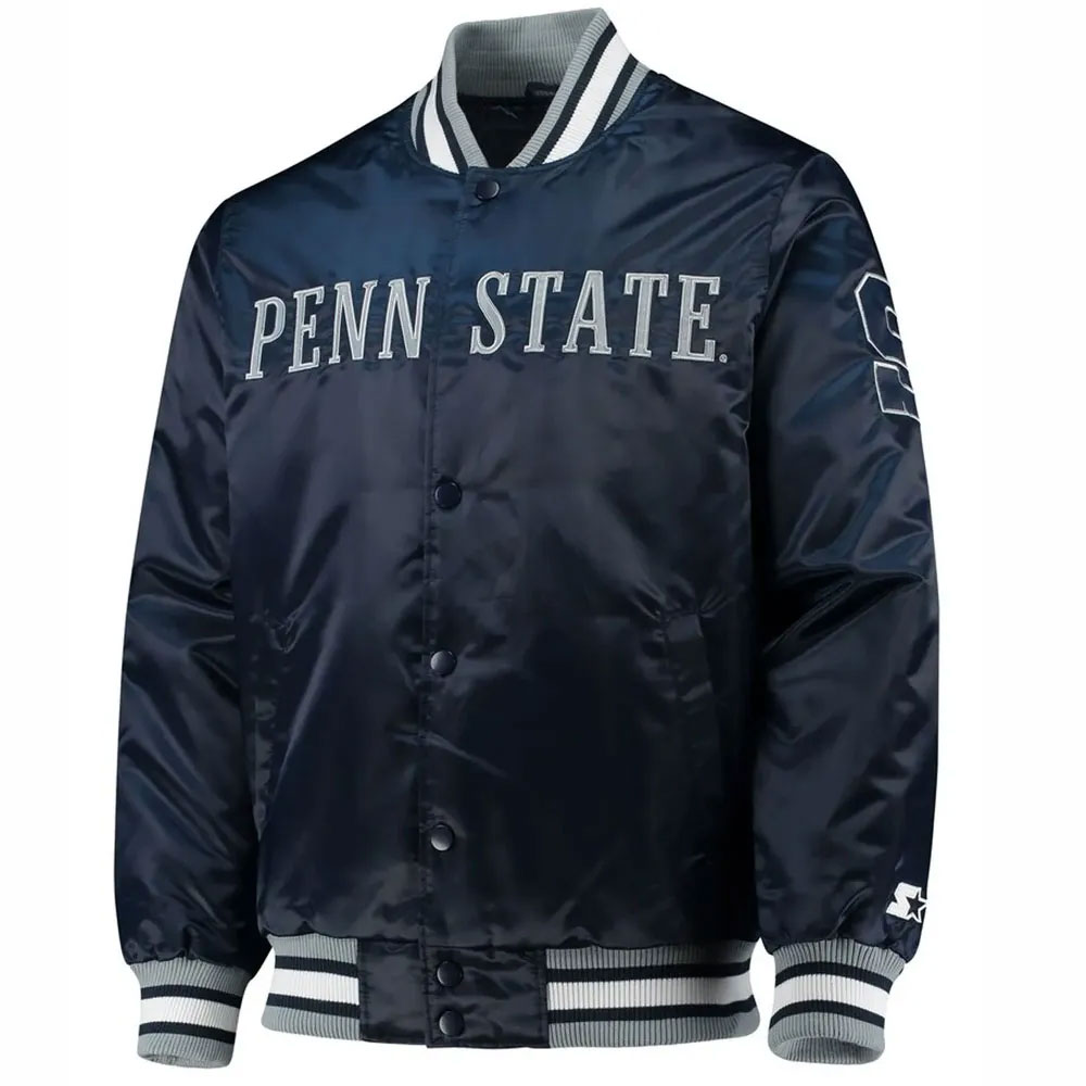 Starter Penn State Nittany Lions O-Line Navy Full-Snap Satin Jacket