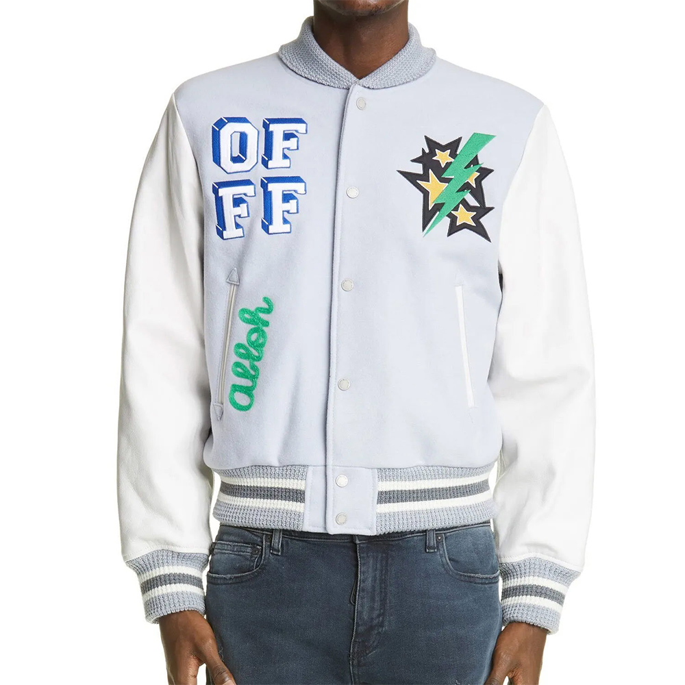 The jacket stays true to varsity heritage with rib-knitted cuffs, collar, and hemline, providing a secure and stylish fit. A full snap-tab button closure adds convenience, while two side waist pockets offer functionality for carrying essentials. Reinforced stitching highlights its durability, making it a long-lasting addition to your collection.