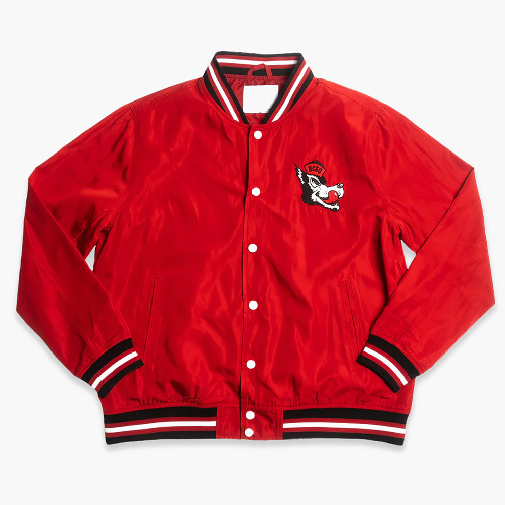 Dive into the heart of Wolfpack fervor with the NC State Wolfpack jacket, an embodiment of loyalty to the NC State Wolfpack football team. Tailored for ardent fans and enthusiasts, this satin jacket in dynamic red is a proclamation of team spirit. Luxuriate in the smooth feel of the satin material, perfectly suited for individuals of all genders. The full-snap front closure provides both style and convenience, while the classic rib-knit collar and rib-knitted cuffs add an element of timeless fashion. Boldly showcasing the team logo on the chest and back, this NC State Wolfpack Vintage Logo Red Bomber jacket is a canvas for your Wolfpack allegiance. The rib-knitted hemline, long fitted sleeves, and fine quality stitching speak to the durability and elegance of this fanwear masterpiece. Whether you’re rallying in the stands or strolling the streets, the NC State Wolfpack jacket is more than a jacket; it’s an expression of your unwavering Wolfpack pride. Elevate your fan gear and embrace the spirit of the NC State Wolfpack. Secure yours now and wear your loyalty with distinction.