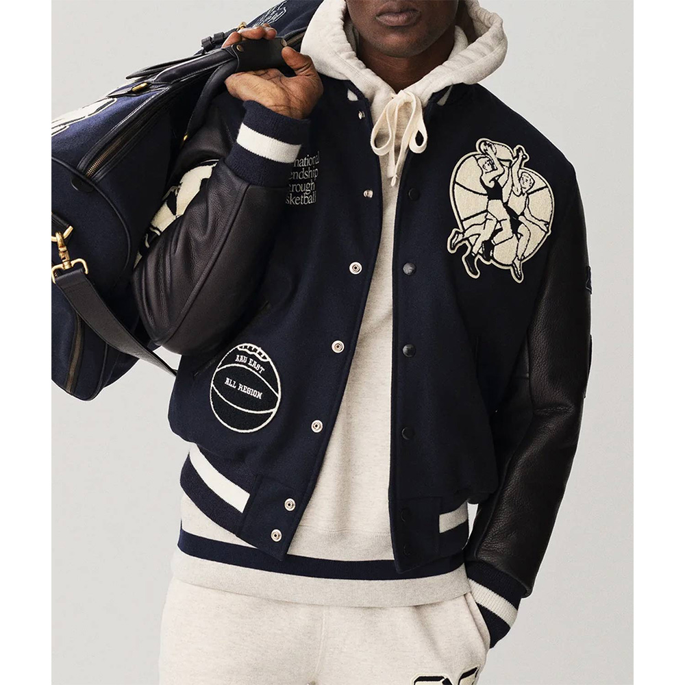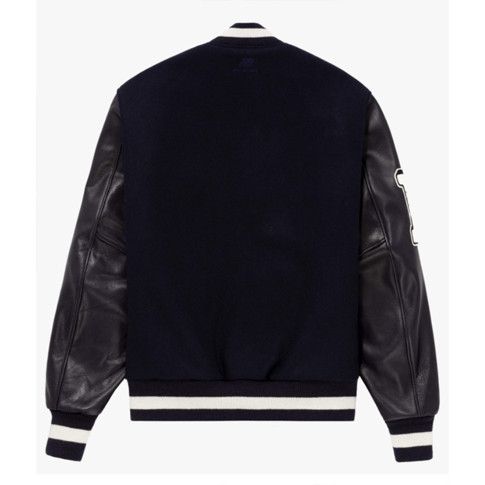 Unlock the gateway to sartorial excellence with the New Balance Varsity jacket, a transcendent fusion of artistry and fashion-forward design crafted body made wool and sleeves made from genuine leather. Its mesmerizing black and navy blue color combination serves as a canvas, on which the wearer becomes a living embodiment of a modern masterpiece. This Sonny Basketball New Balance Varsity jacket defies convention with its revolutionary rib knitted collar, a sculptural marvel inspired by the fluidity of contemporary architecture. The snap tab buttoned front closure becomes a transformative symbol, bridging the realms of fashion and self-discovery. With its soft viscose inner lining, the New Balance Varsity jacket, becomes a sanctuary, cocooning you in comfort and serenity. Step into a world where style becomes an extension of your being, where boundaries dissolve and the extraordinary becomes your reality
