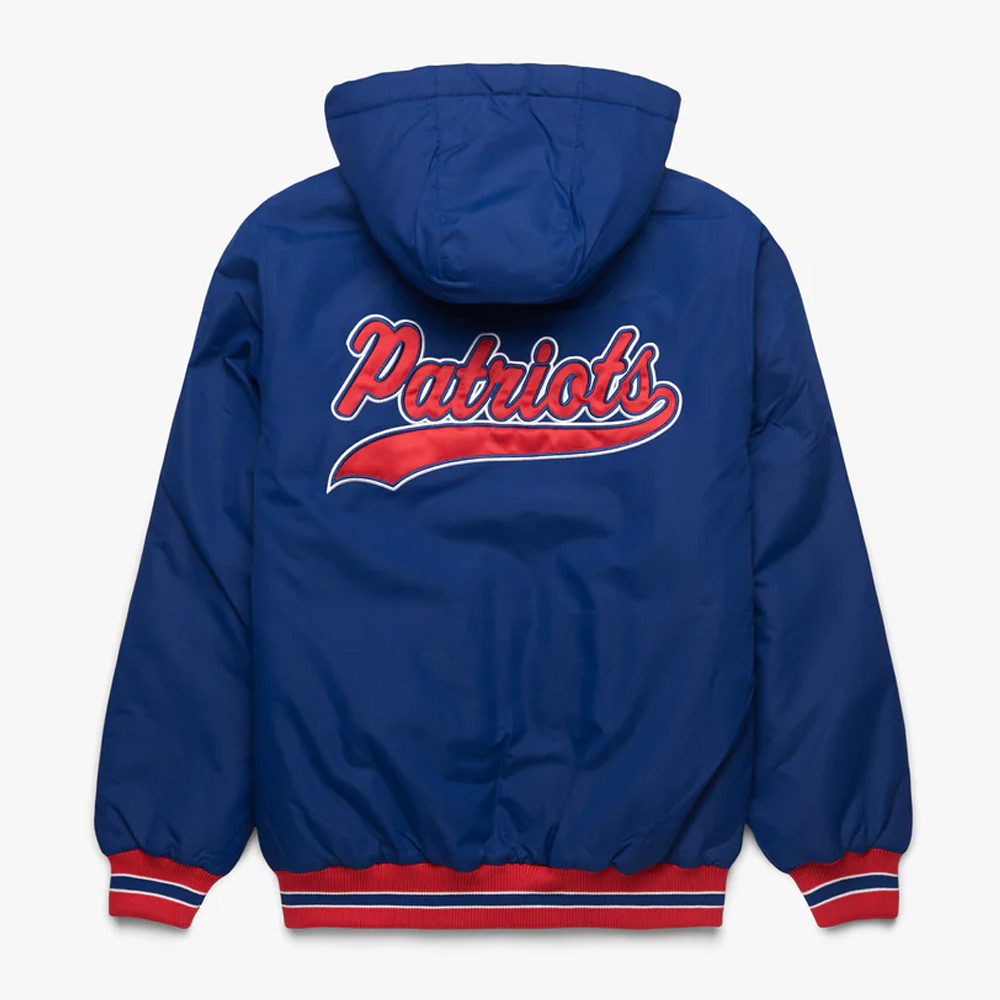 Styling and comfort are combined in the two slanted waist side pockets and two inner pockets in order to ensure that you can carry around your belongings comfortably. The inner viscose lining of New England Patriots Blue Hooded Jacket provides an added layer of comfort and it will feel great against your skin, perfect for game day wear, casual or daily use.