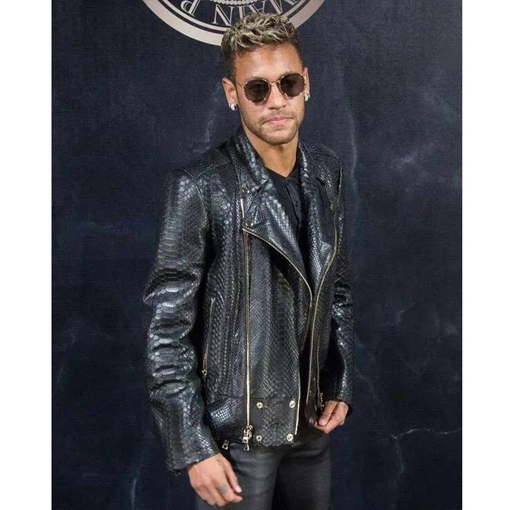 Unleash your inner football star’s charisma with the Neymar Leather Jacket, a captivating tribute to the legendary Neymar da Silva’s unmatched style. Constructed from high-quality faux leather, this jacket offers an impressive combination of fashion and edge. The jet-black color adds an air of mystery and sophistication to your ensemble, The lapel-style collar exudes a mix of classic charm and contemporary allure, providing a perfect blend of sophistication and modernity. The branded YKK zipper front closure not only enhances the jacket’s modern appeal. perfectly capturing the essence of Neymar’s fearless spirit on and off the field. Designed for a snug and flattering fit, the Neymar Da Silva Santos Leather Jacket features long sleeves that exude confidence and style. The soft viscose lining enhances comfort and ensures a smooth feel against your skin. Two outside pockets offer practicality without detracting from the jacket’s sleek appearance. Whether you’re hitting the streets, hanging out with friends, or aiming to make a bold statement, this Neymar Leather Jacket is a must-have addition to your wardrobe.