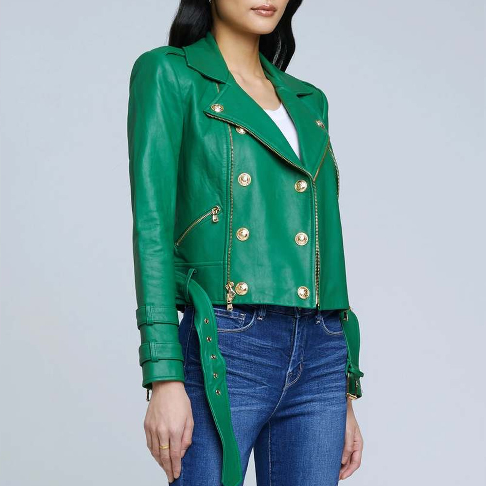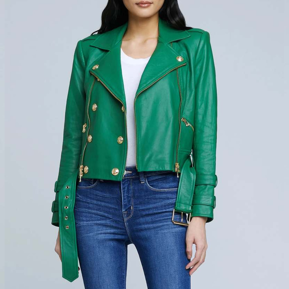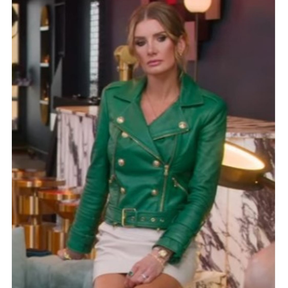 Selling Sunset Season 8 Nicole Young Green Leather Belted Jacket