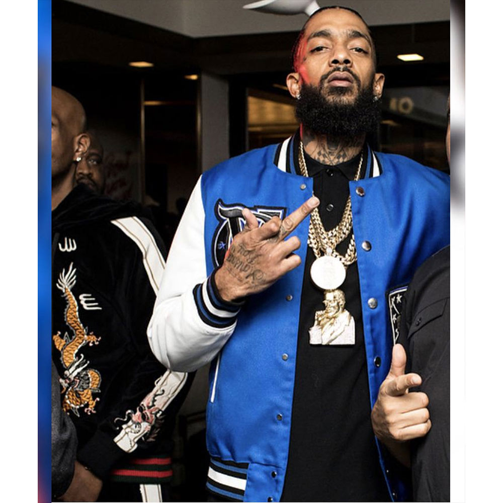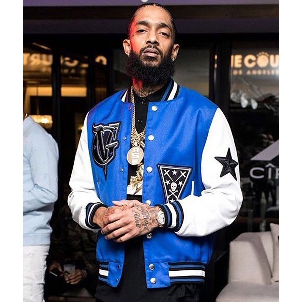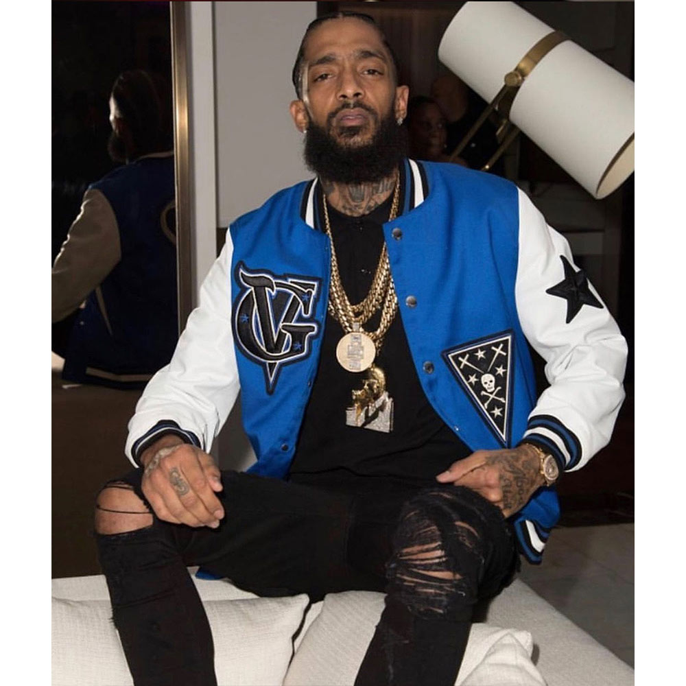 Nipsey Hussle Varsity Jacket – VG Blue & White Letterman
