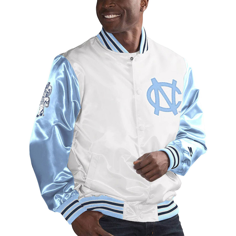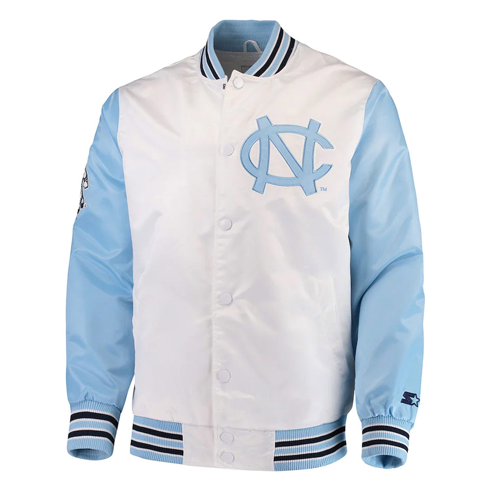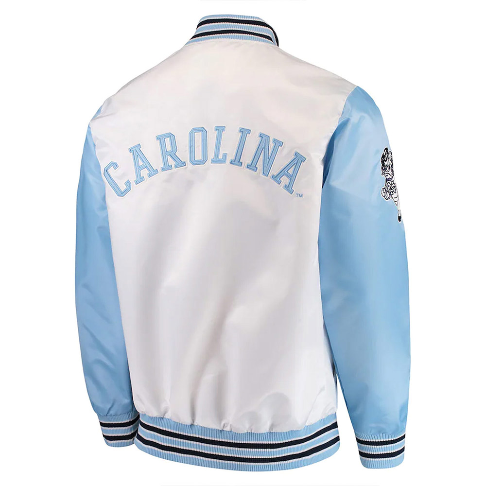 The Rookie North Carolina Tar Heels Blue/White Varsity Satin Full-Snap Jacket