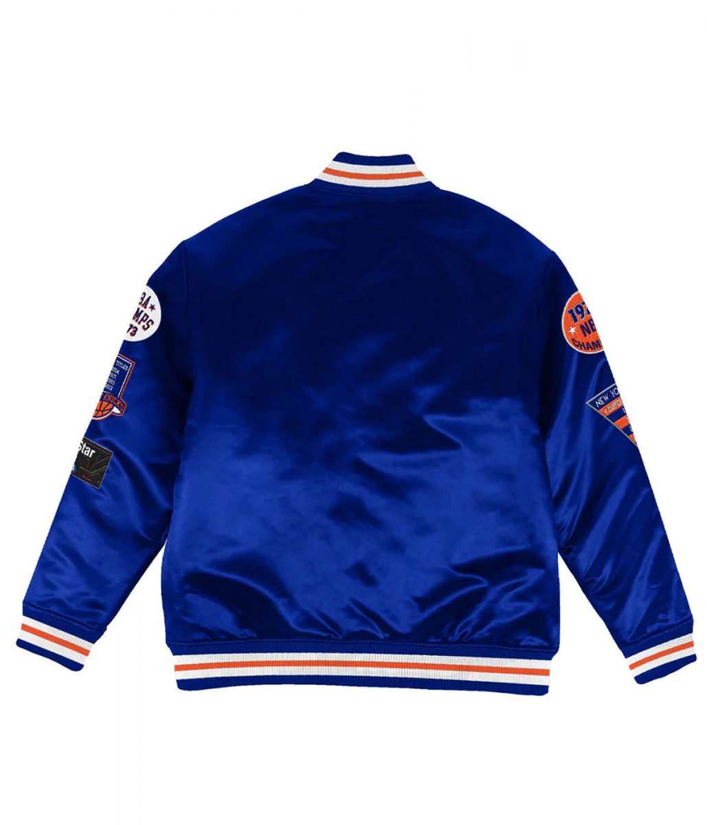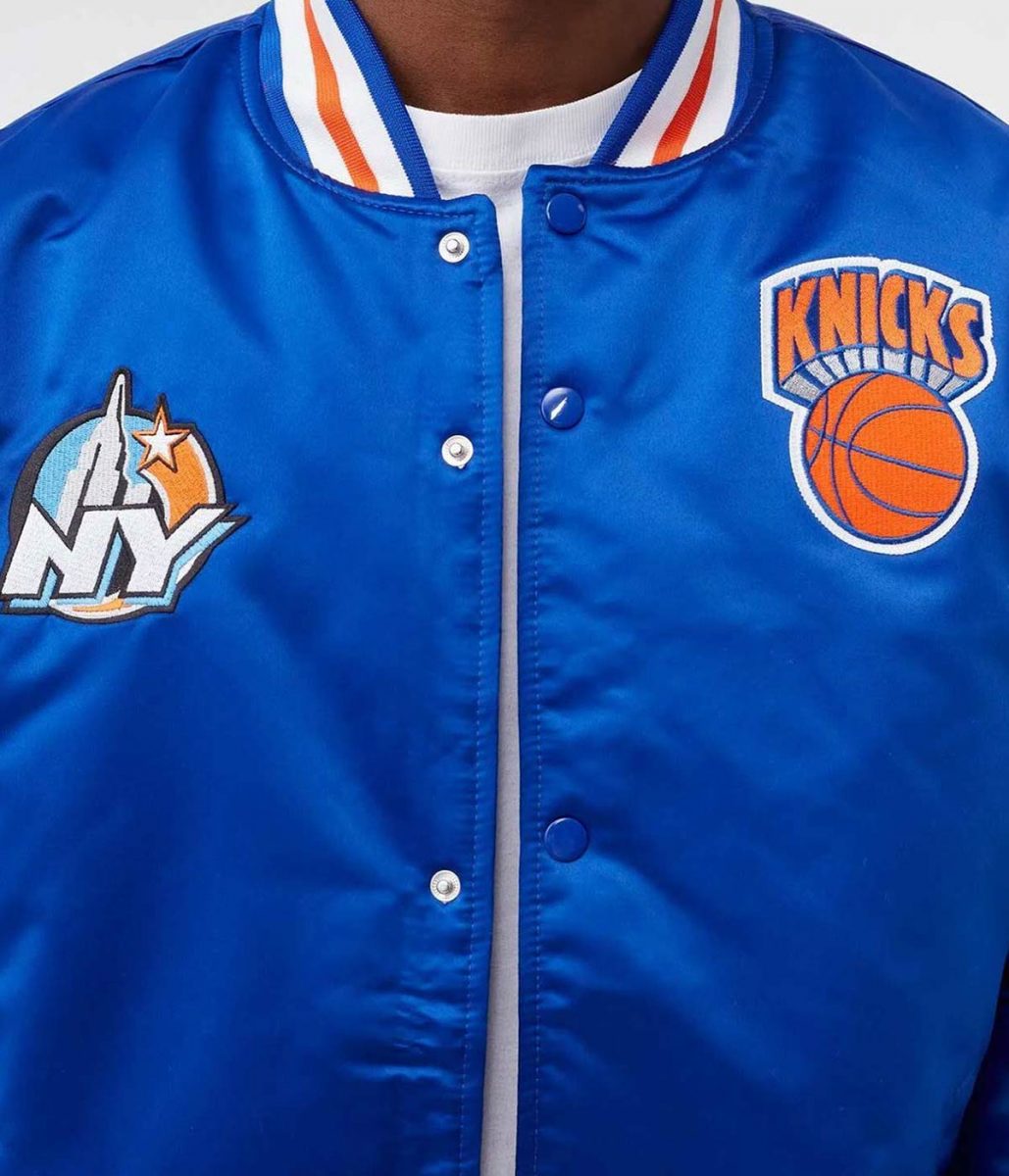 The New York Knicks Champ City Royal jacket is made from high-quality satin. The jacket is available in a glorious blue color, which gives it an innovative and attractive look. The collar of the jacket is a shirt style. It has a classic YKK zipper front closure. A soft viscose inner lining of the jacket keeps you warm and relaxed. The sleeves of the New York knicks Champ City Royal Blue Satin jacket are long ends with rib-knitted cuffs. The jacket has two side waist pockets for keeping stuff. The fine quality stitching of the New York Knicks Champ City Royal jacket makes it durable and desirable to wear. The jacket is an ideal choice for stylish men and women.