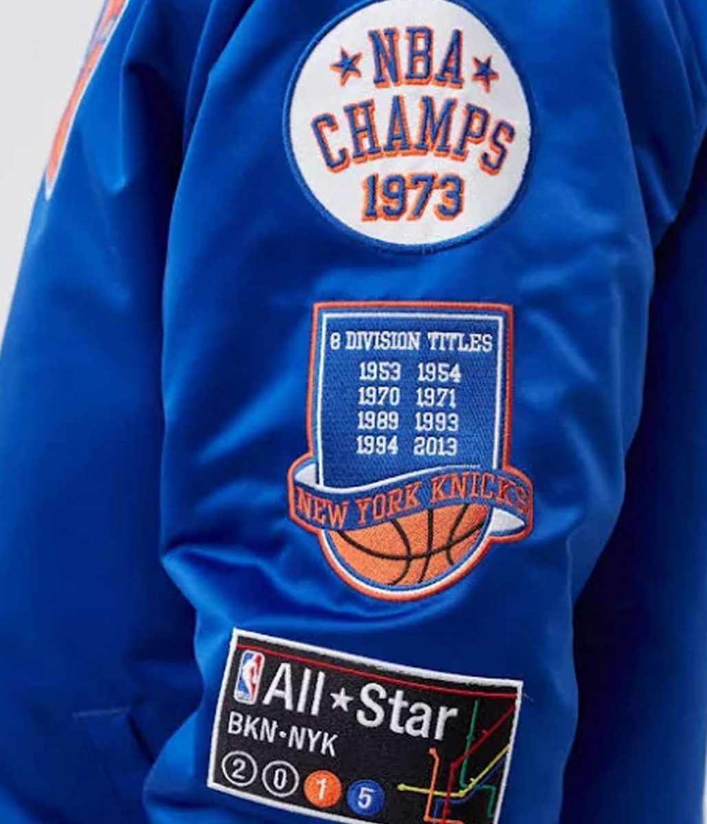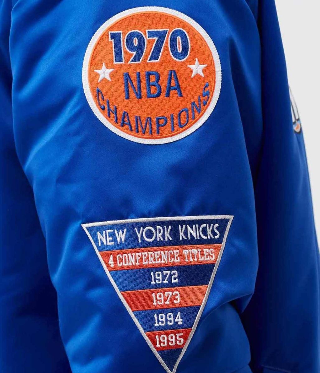 NBA New York Knicks Champ City Satin Bomber Royal Blue Jacket