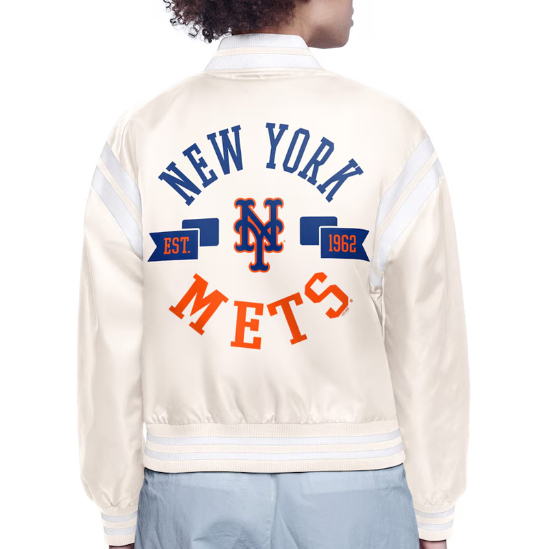 New York Mets Printed Logo Full-Snap Black Varsity Satin Jacket