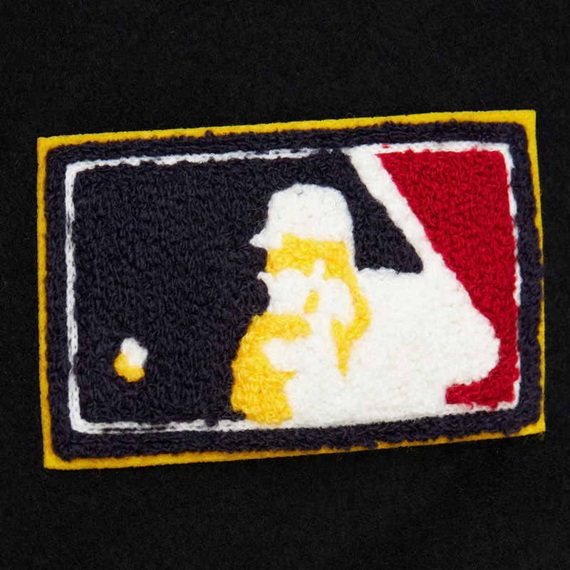 The jacket is adorned with plenty of logos on the front, all to pay tribute to the New York Yankees. On the back, large inscription “New York Yankees” will be a symbol of your dedication to the team. The two slanted waist pockets and two inner pockets give good compartments for the storage of items. The New York Yankees Black Out Varsity Jacket is a perfect piece of garment with precise stitching and outstanding finishing to represent the team’s spirit.