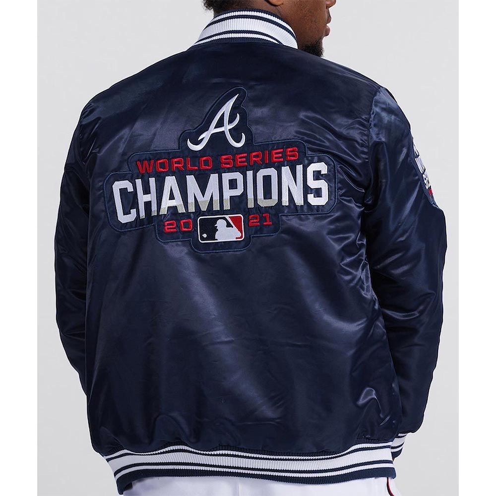 Atlanta Braves World Series Champions 2021 Bomber Navy Blue Satin Jacket