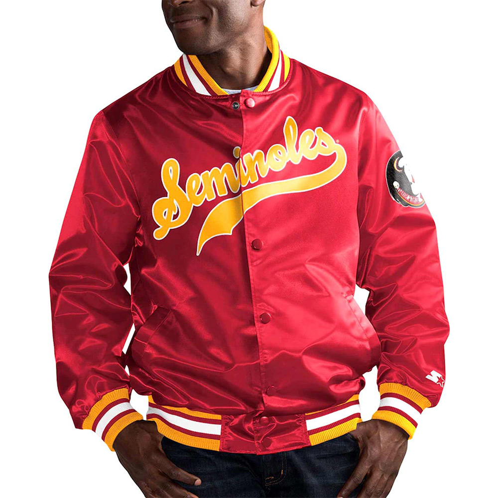 Starter O-Line Florida State Seminoles Satin Full-Snap Red Jacket