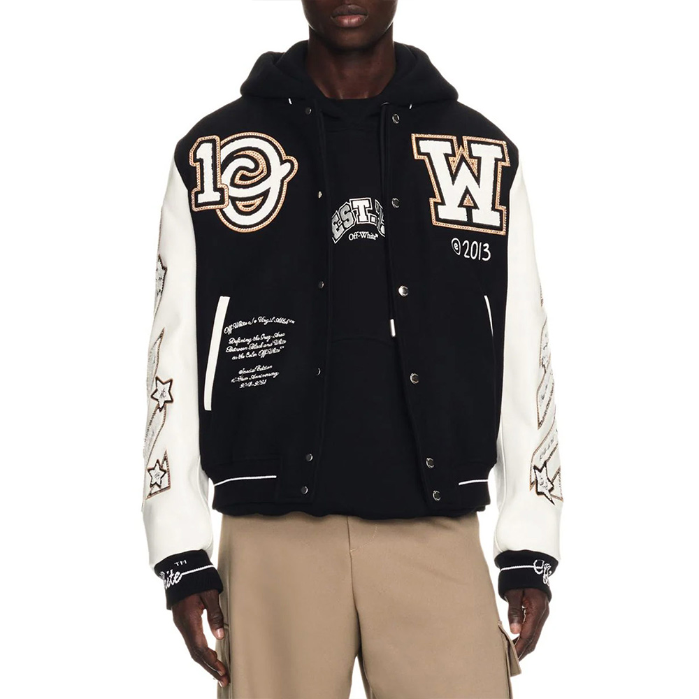 Classic of 2013 Off-White Logic Black/White Varsity Wool/Leather Jacket