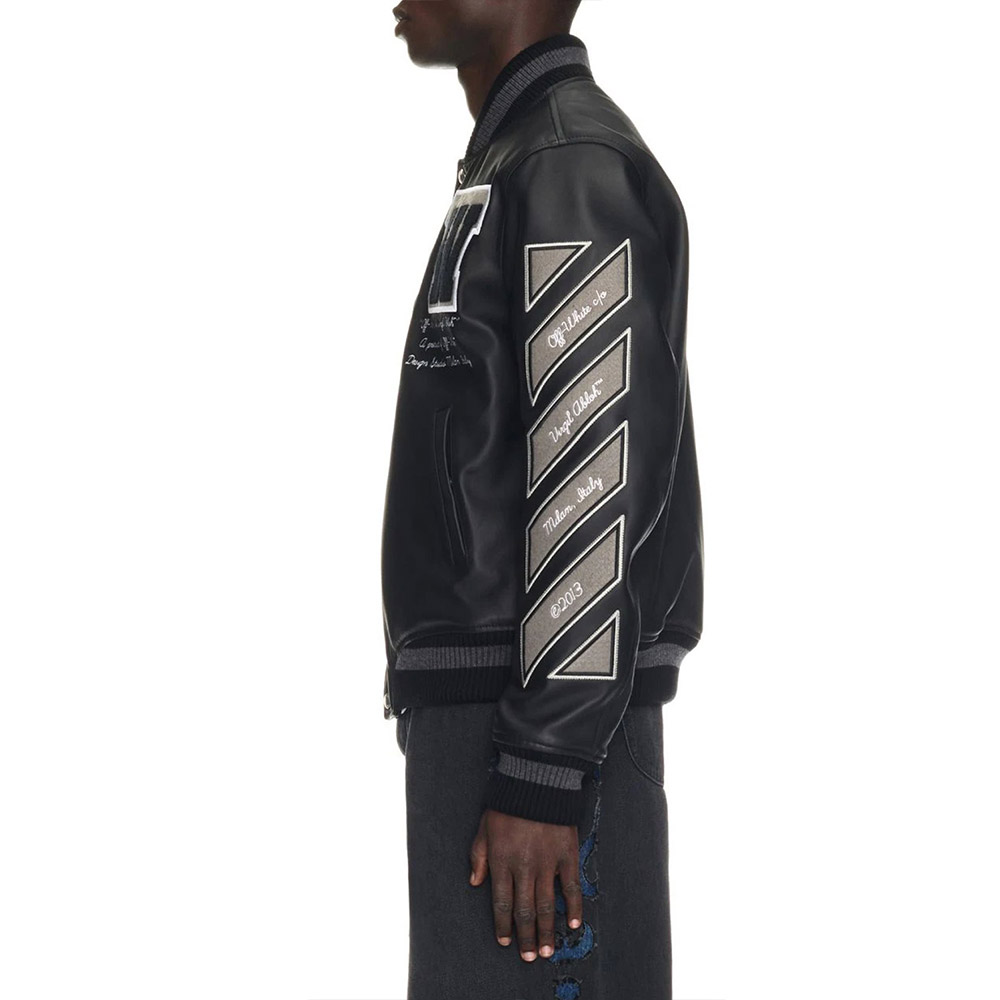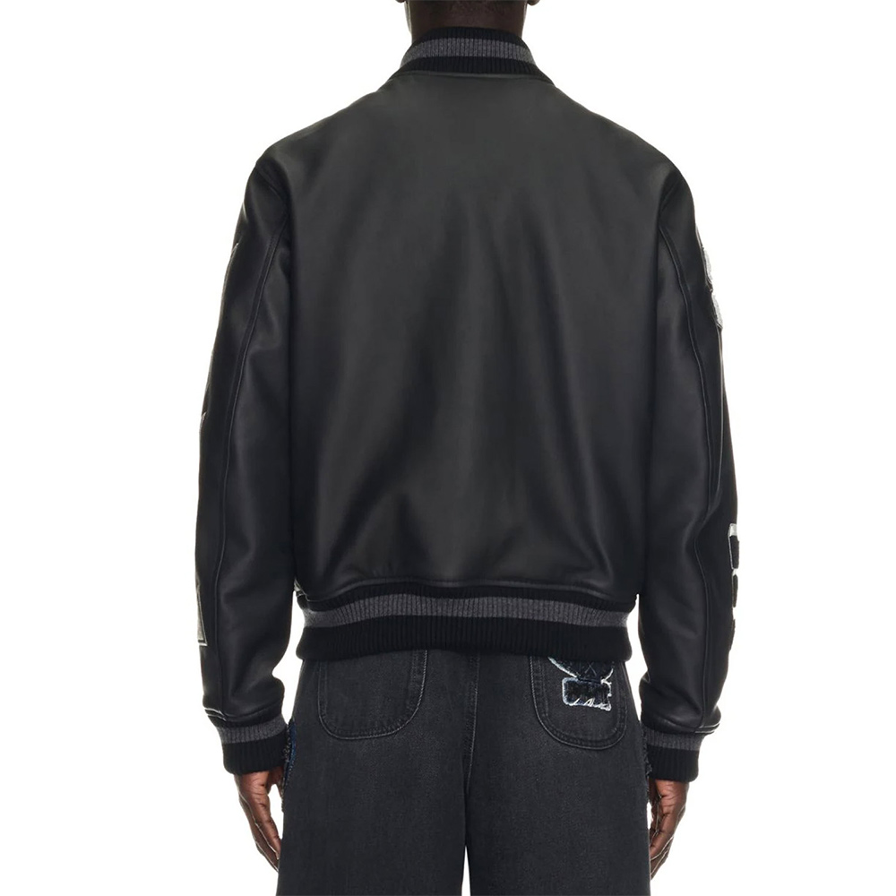 Off-White Full Varsity Full-Snap Black Leather Jacket