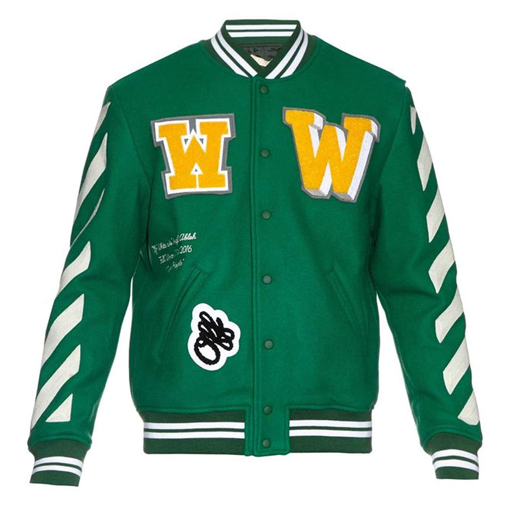 Make a bold fashion statement with the Off-White Green Varsity Jacket, a premium outerwear piece inspired by Virgil Abloh’s visionary streetwear legacy. Designed with meticulous craftsmanship, this jacket embodies the perfect fusion of comfort, exclusivity, and contemporary edge.