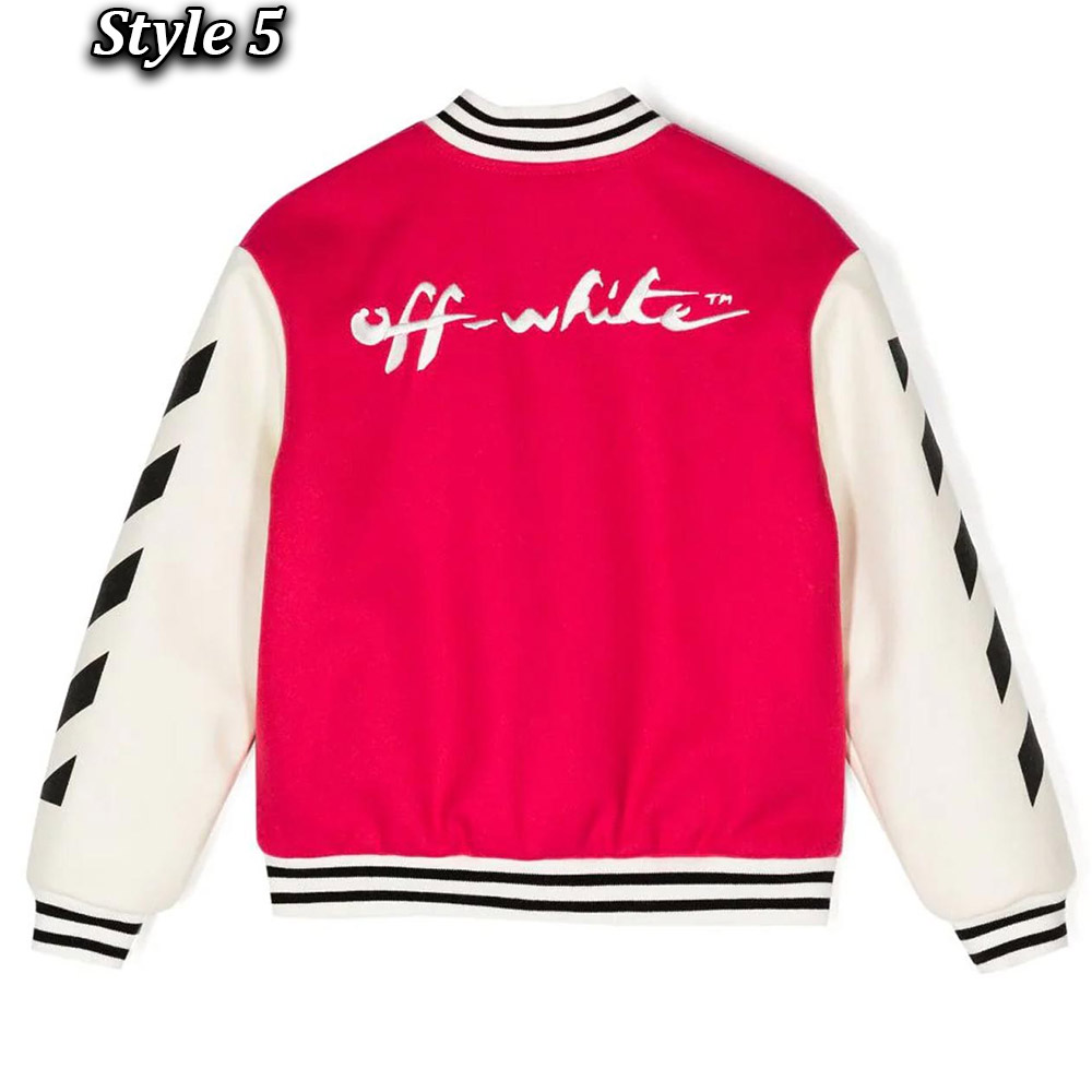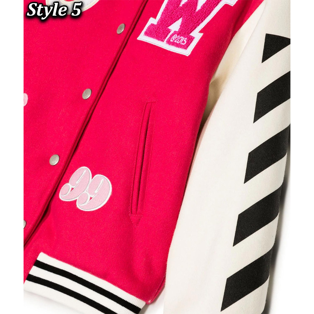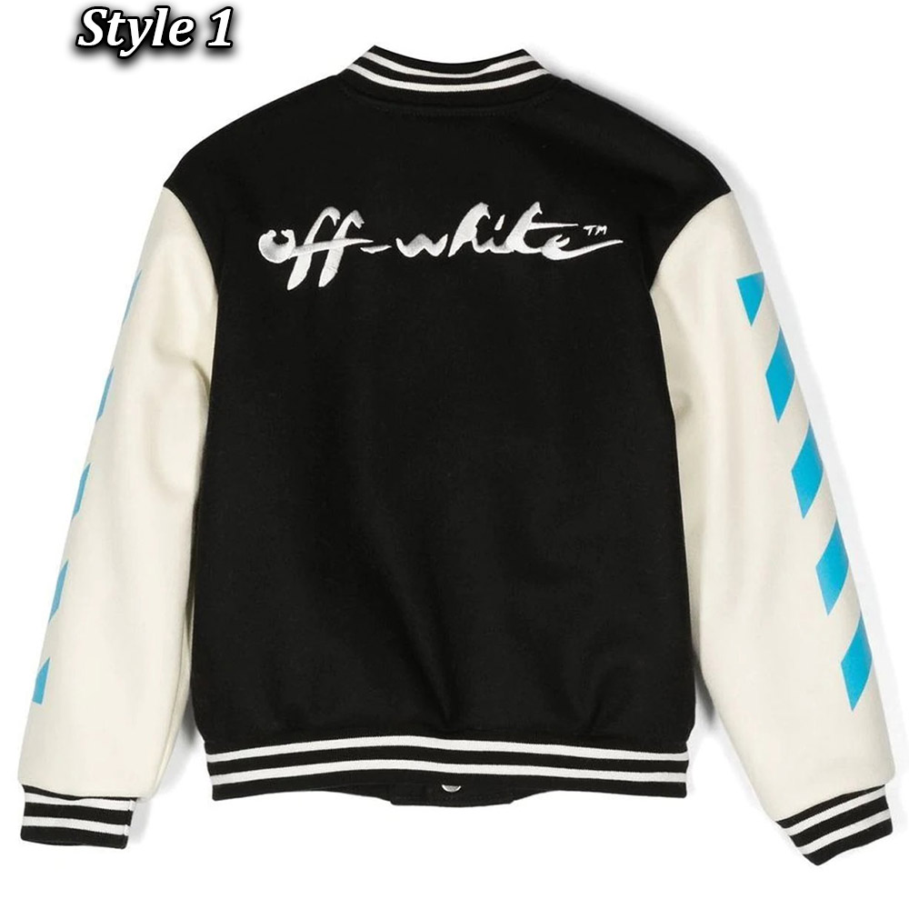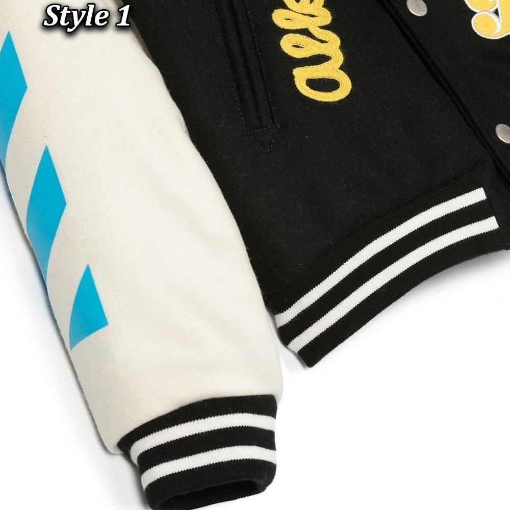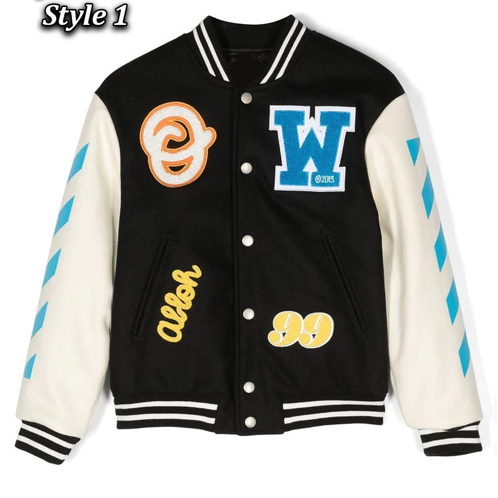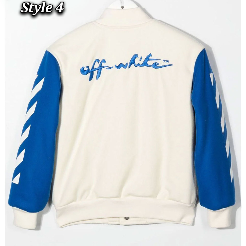 Unleash your style with the Off-White Patch-Detail Varsity jacket, meticulously crafted Body made wool and sleeves made from genuine leather. Its glorious off-white color creates an innovative and attractive visual appeal that is simply mesmerizing. This Off-White Patch-Detail Abloh Varsity jacket features a classic rib knitted collar and a buttoned front closure, marrying elegance with convenience. The soft viscose inner lining guarantees warmth and relaxation, while the long sleeves with rib-knitted cuffs provide a comfortable and refined fit. With two inner and two side pockets, this Off-White Patch-Detail Varsity jacket offers practicality and functionality. The fine quality stitching ensures both comfort and desirability, making it an ideal choice for parties and events